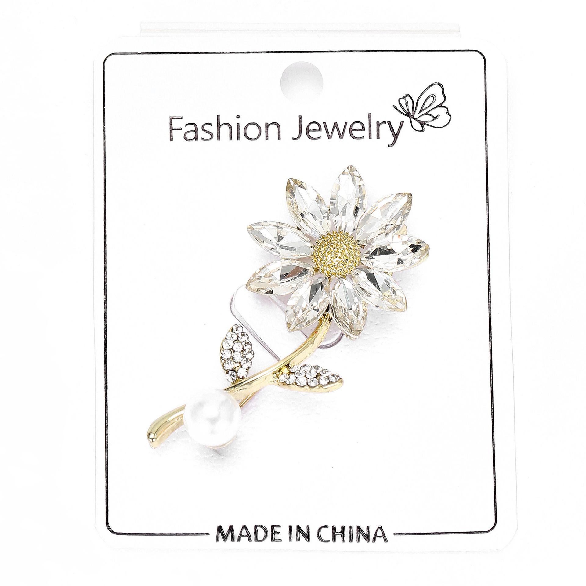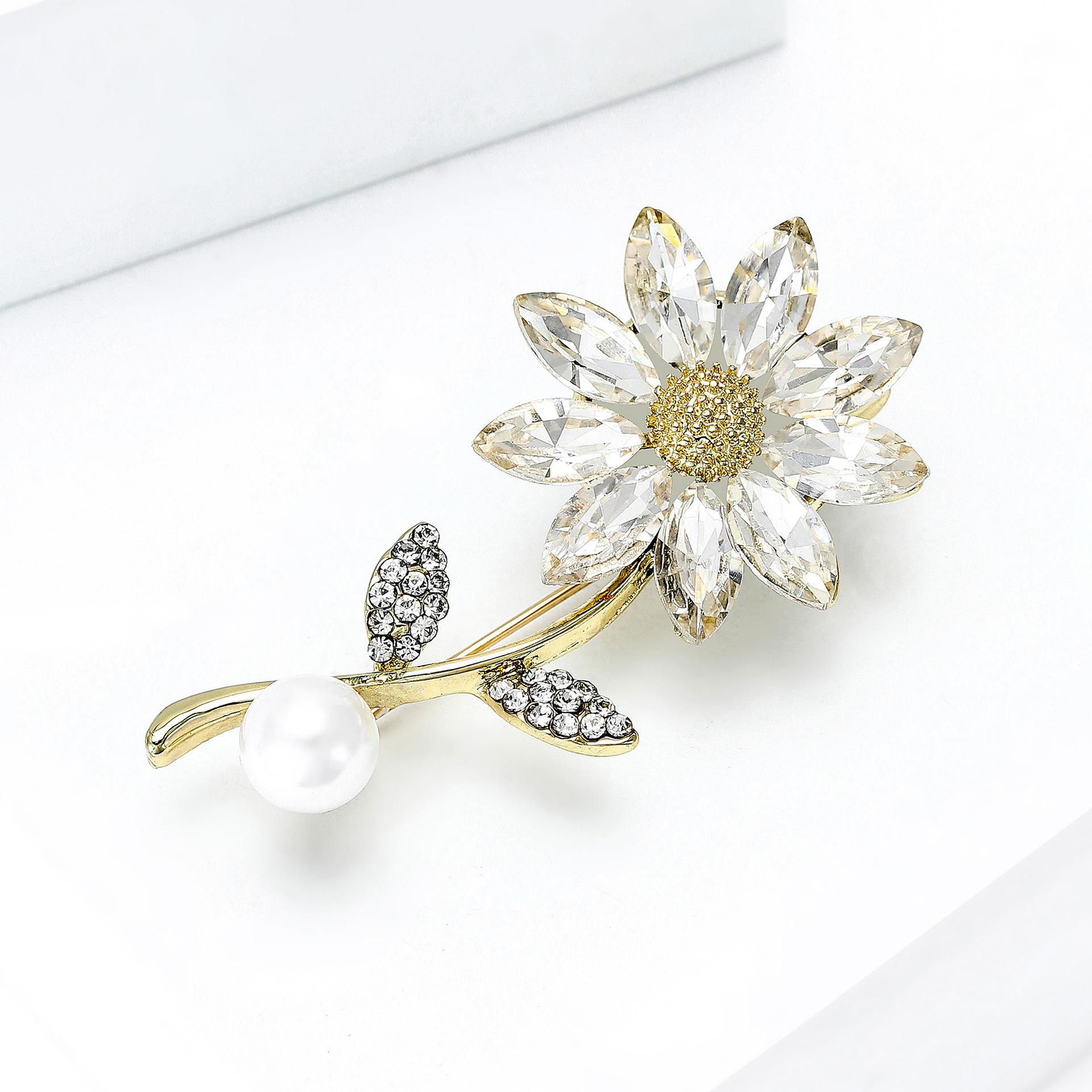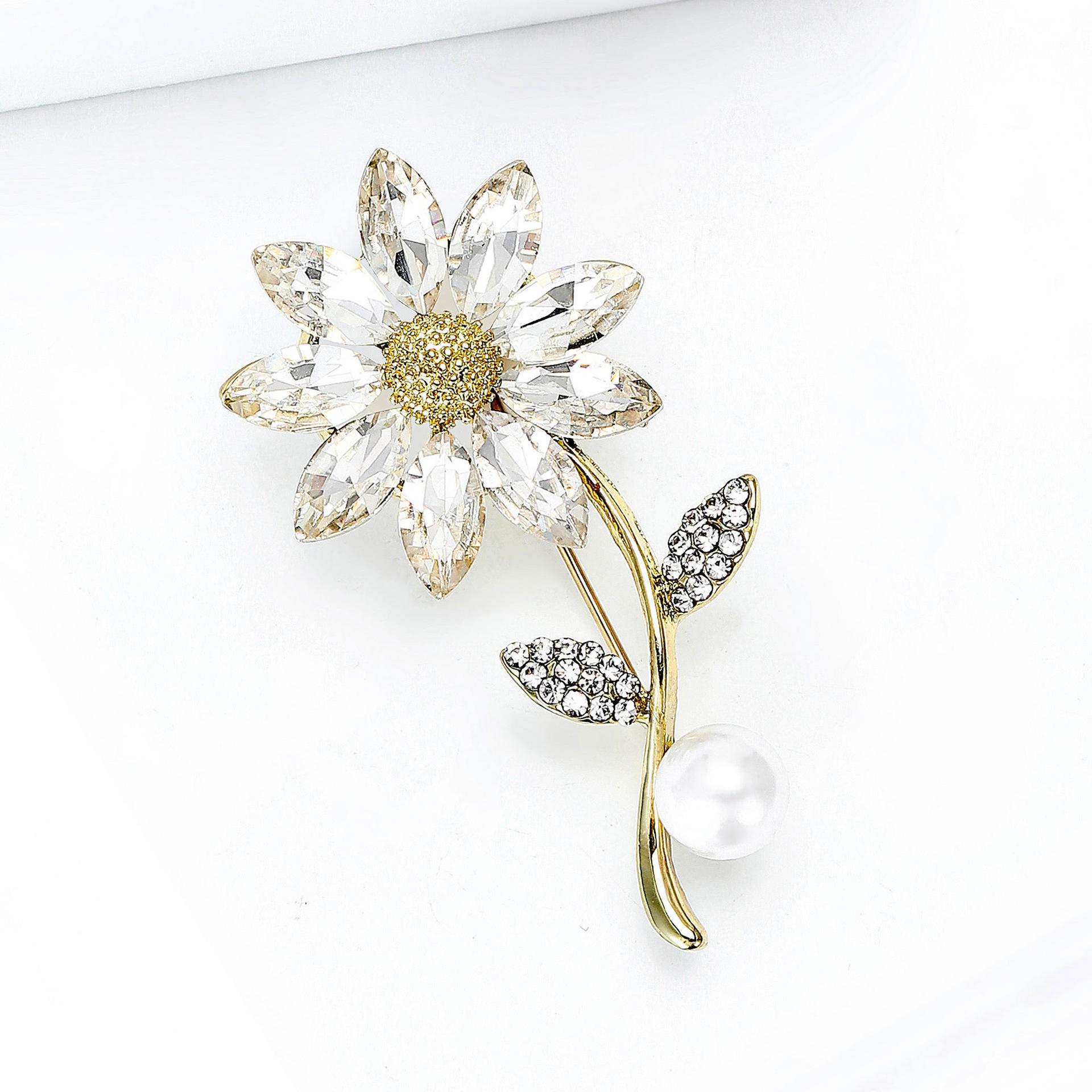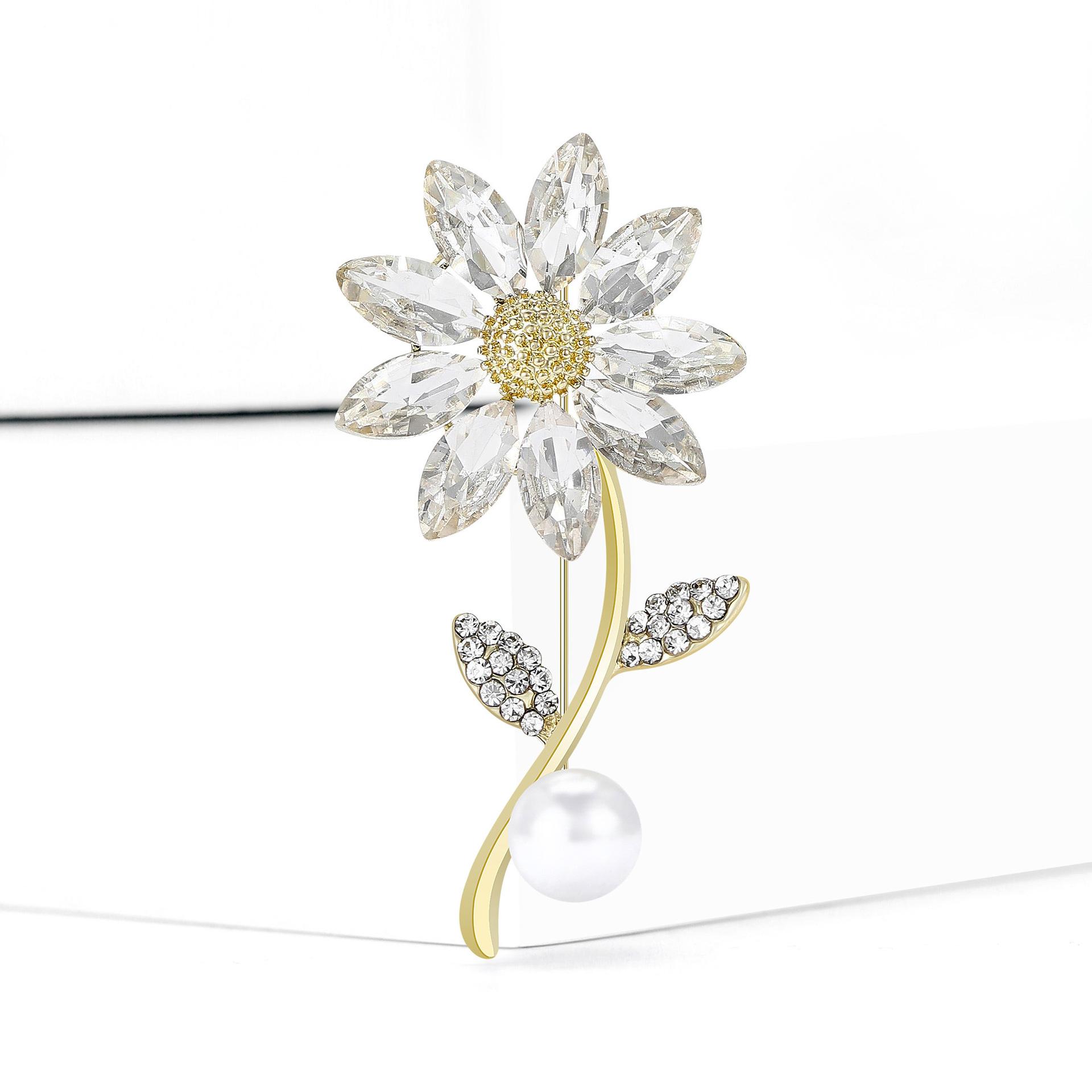 Broche Flor Margarida Strass Estilo Coreano, Alfinete de Pérola Strass Fashion, Fivela de Xale para Terno Feminino, Acessório Elegante para Lapela