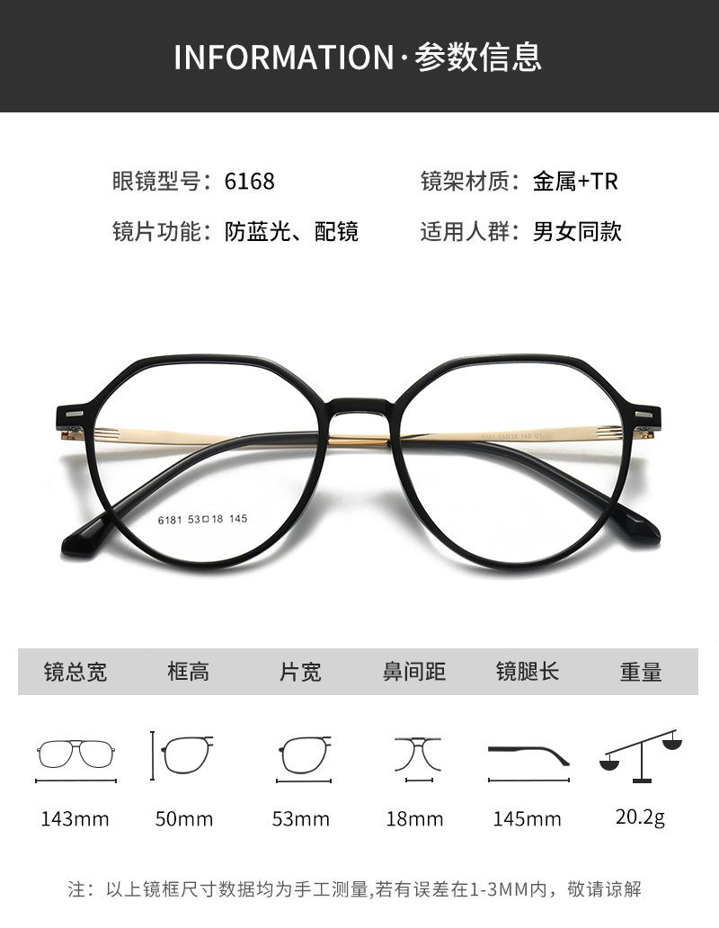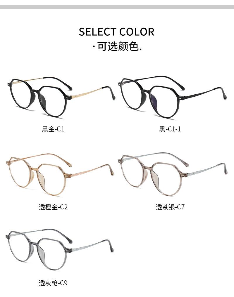Nova Armação de Óculos Tr90 Moda Simples Assimétrica Redonda Miopia Espelho Plano Estilo Coreano Óculos Armação Grande Atacado