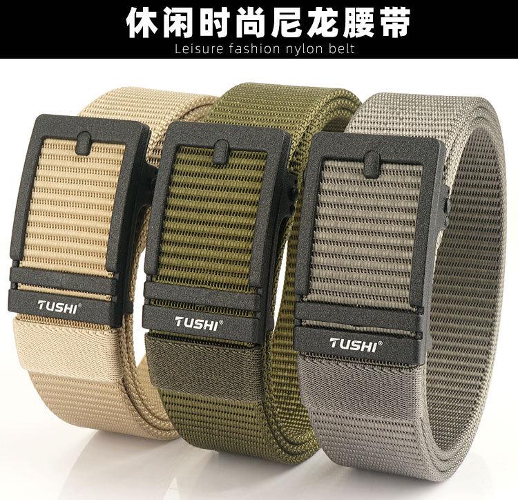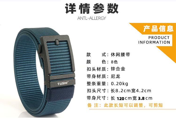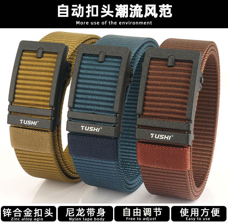 Cinto masculino desdentado TUSHI fivela automática de nylon cinto de desgaste interno masculino jovem e meia-idade casual calças cinto