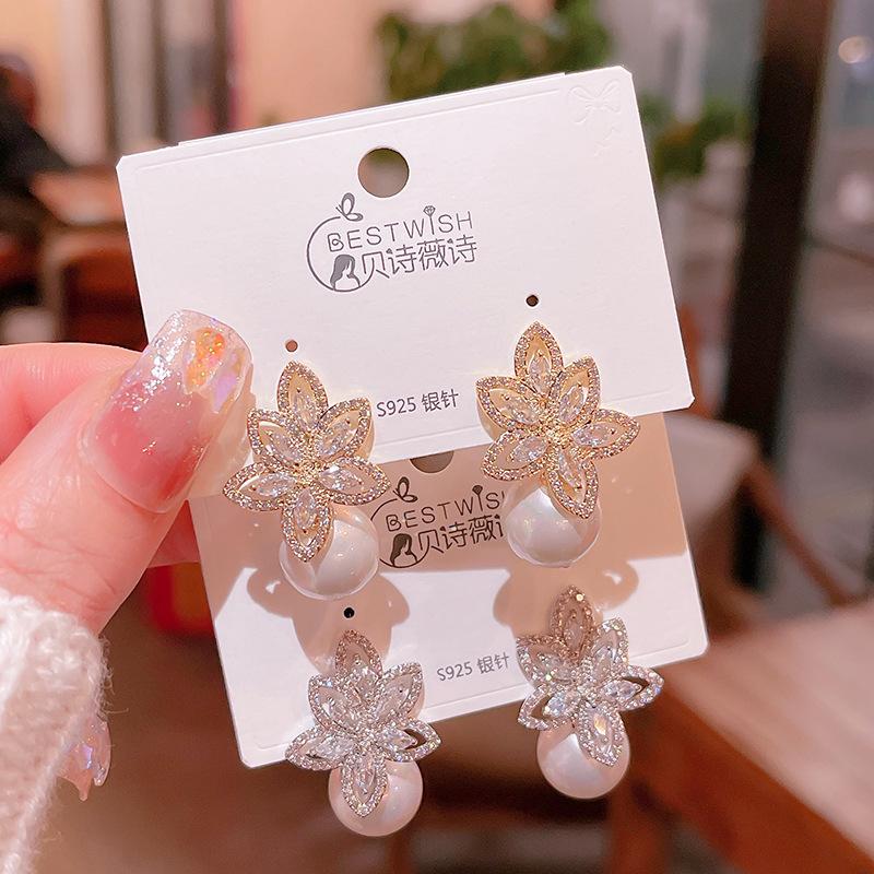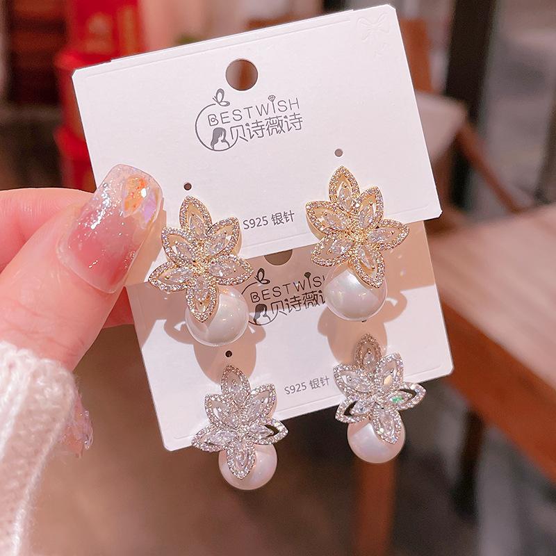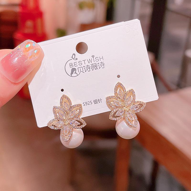 Compre Coreia do Sul estilo coreano leve socialite de luxo 2023 moda Shell Pearl brincos micro incrustados zircão elegante vestido brincos brincos brincos no atacado no Joom.pro