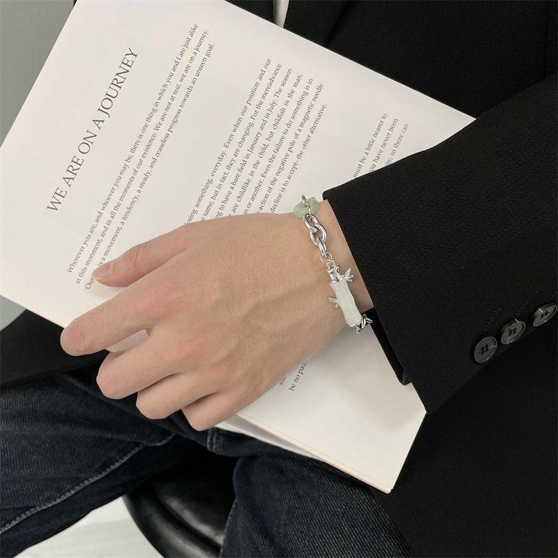 Novo Estilo Chinês Bambu Branco Jade Pulseira Antigo Nicho Design High-end Moda Nacional All-match Light Luxury Trendy Jóias