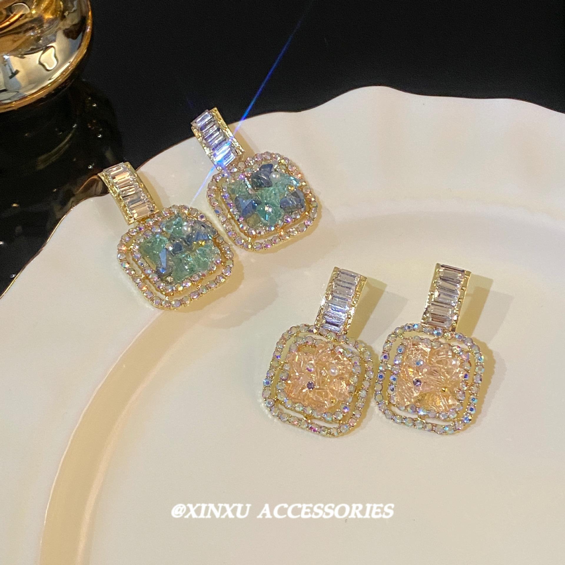 Novos brincos de cristal quadrados embutidos em diamante nicho brincos de design retrô elegantes brincos de luxo leve de alta qualidade