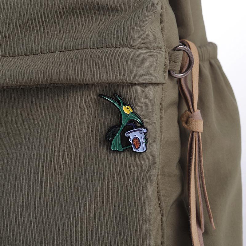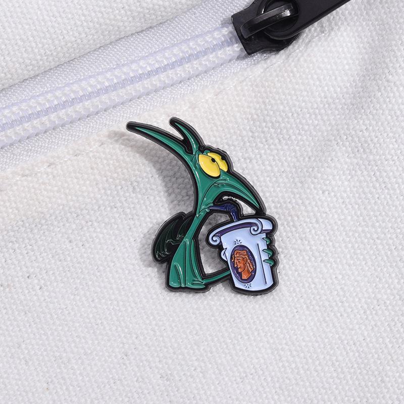 Insignia Bidimensional Periférica de Dibujos Animados, Película y Televisión, Lindo Monstruito Bebiendo Agua, Creativo Versátil, Accesorios de Ropa, Broche de Aleación