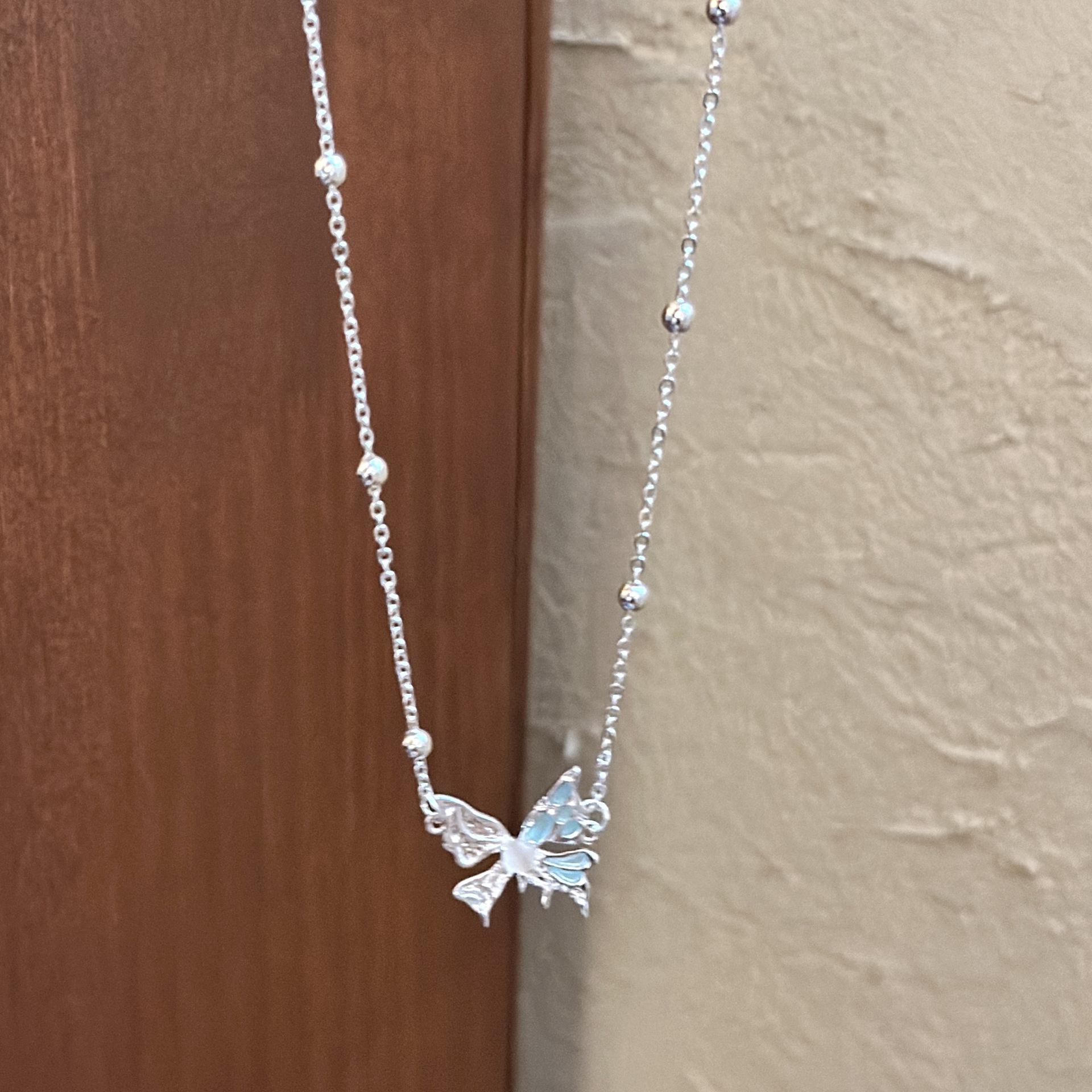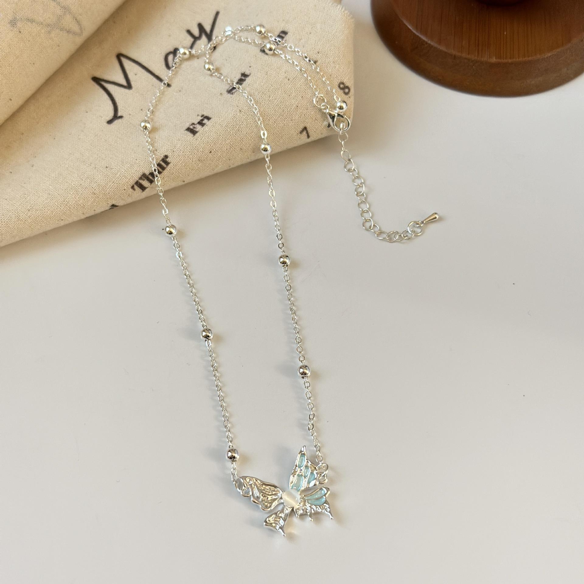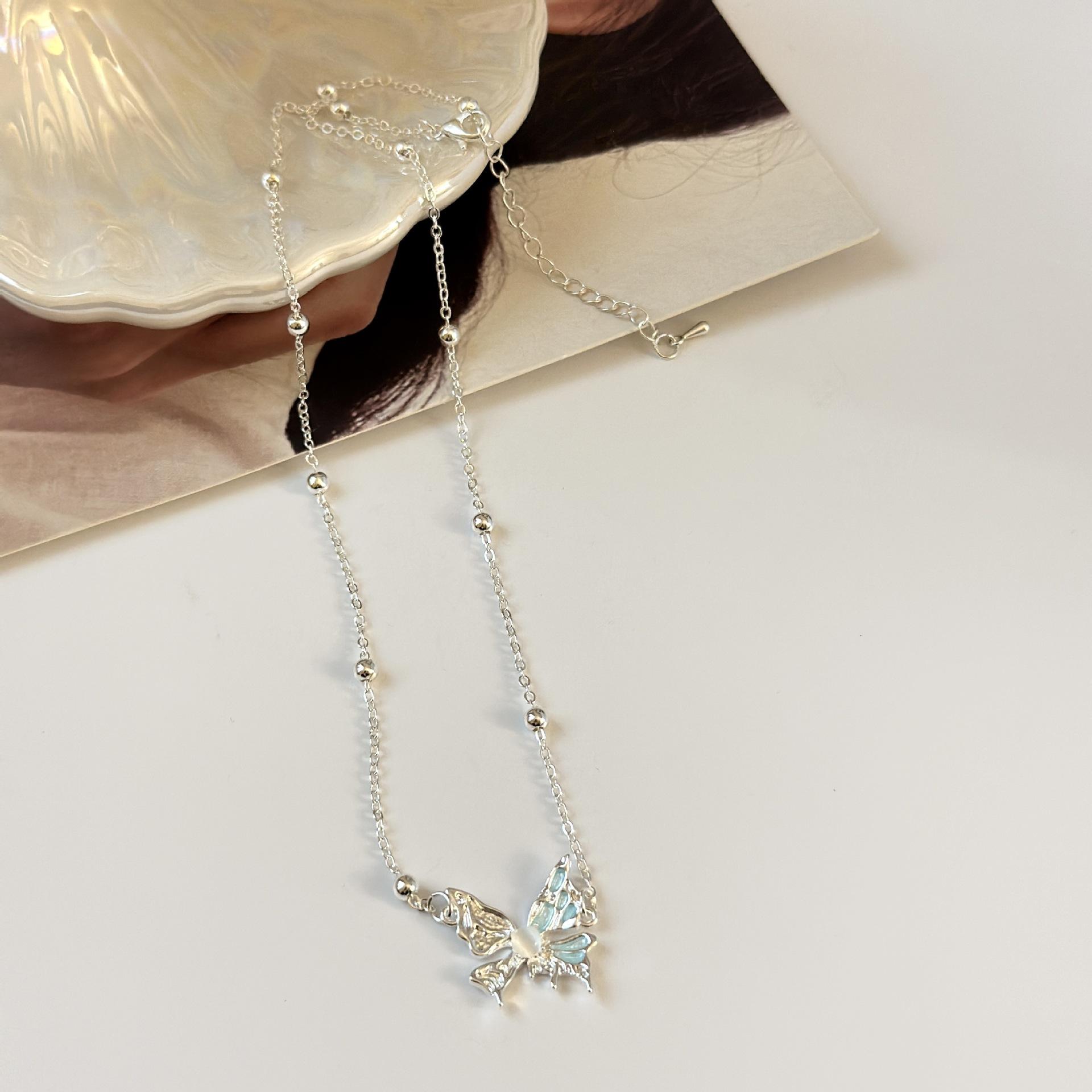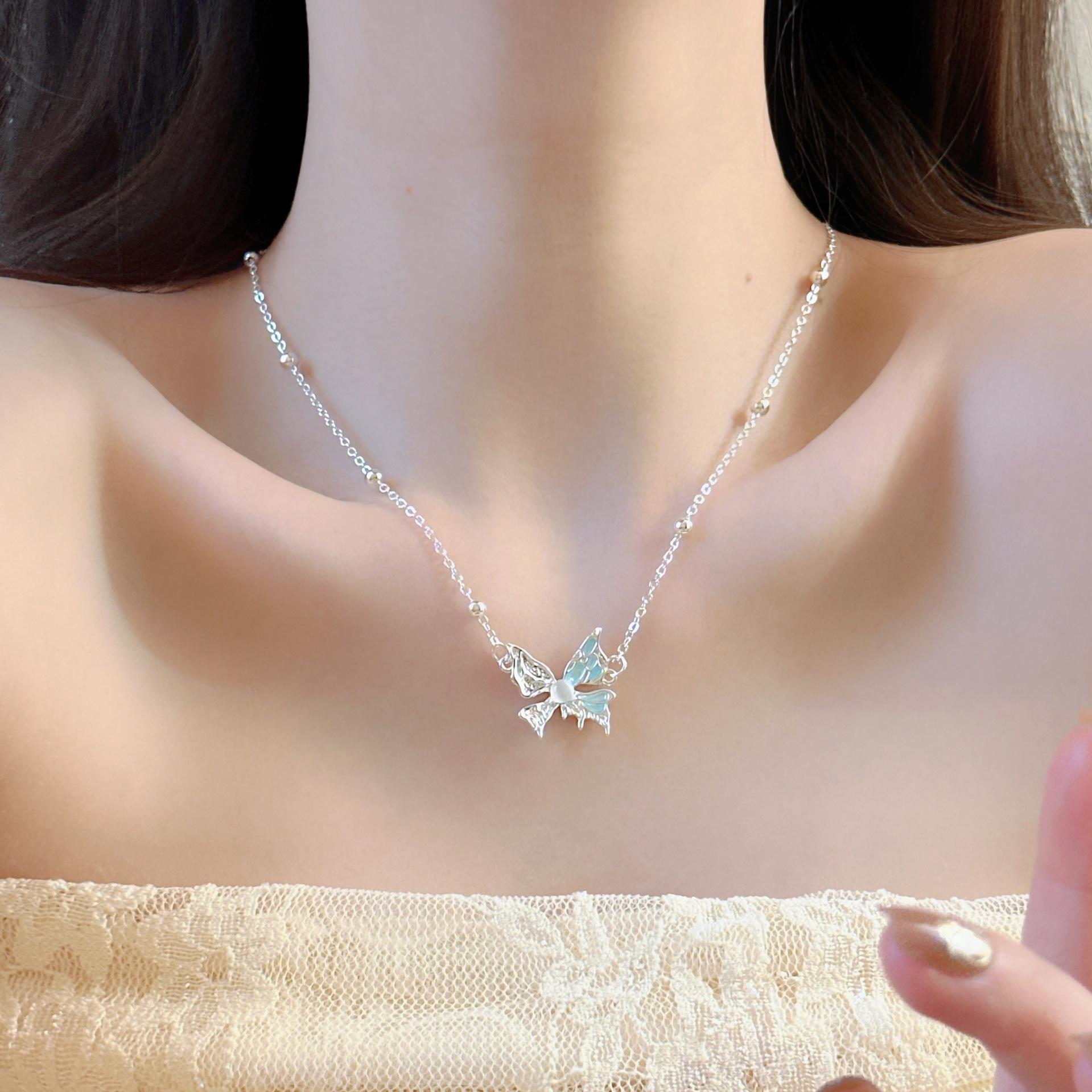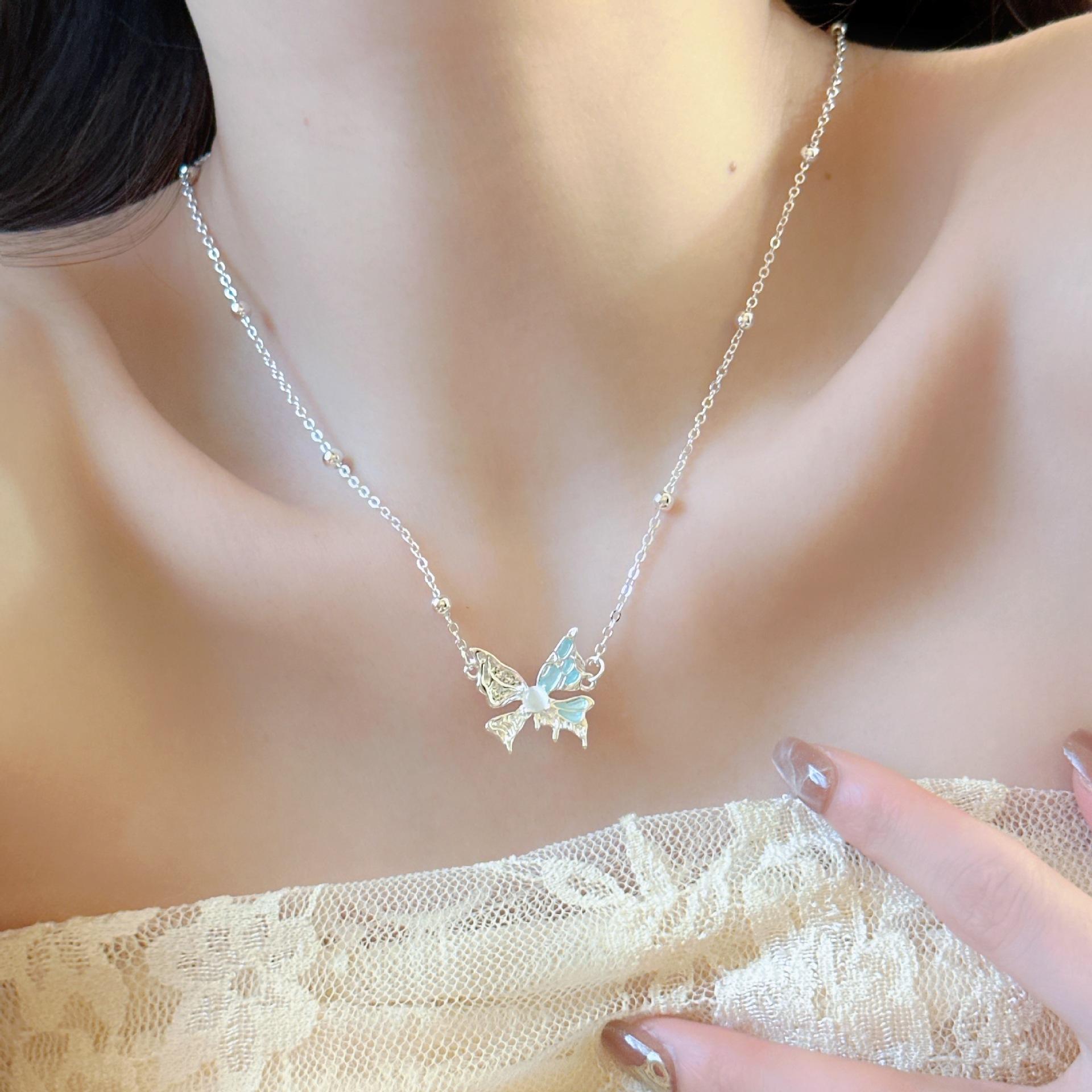 Colar Borboleta Olho de Gato Líquido Prata Feminino 2024 Novo Super Fada Versátil Design Nicho Colar de Alta Qualidade