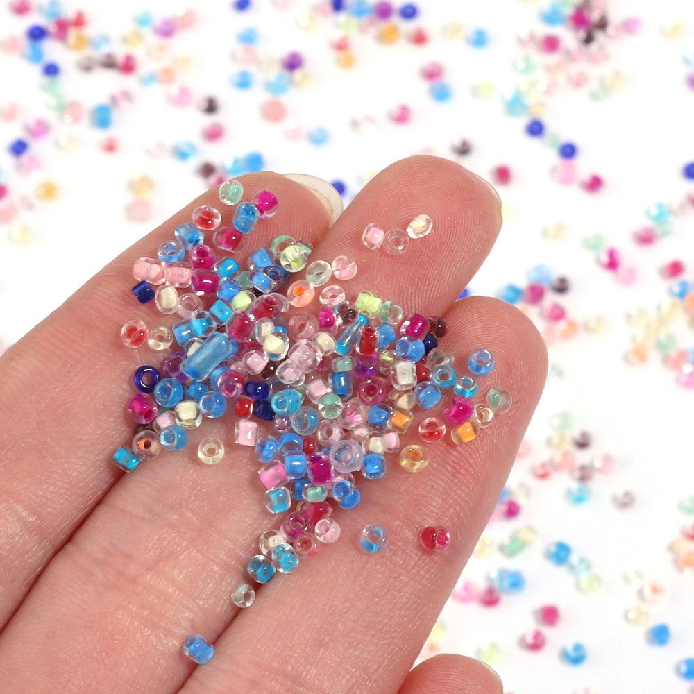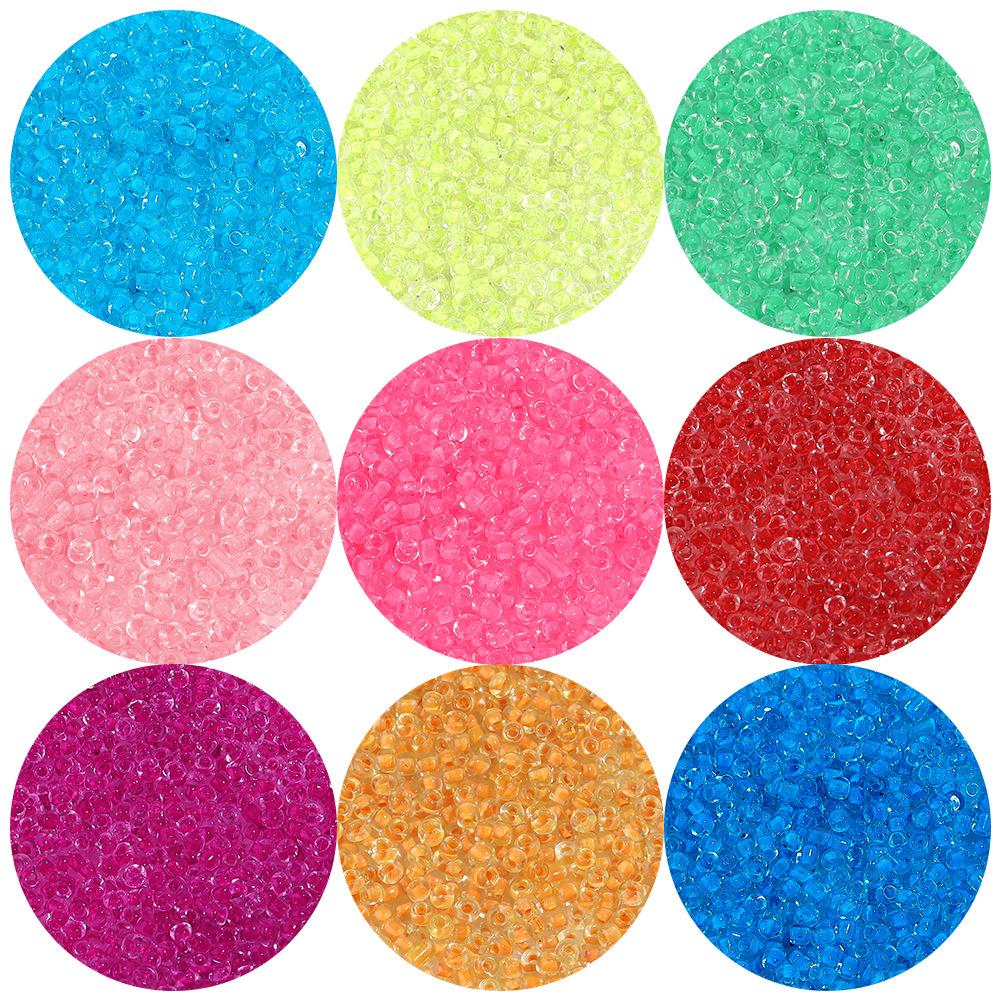 Contas de arroz de vidro tingido transparente em uma garrafa, diâmetro de cerca de 2 mm, tamanho de poro de cerca de 0,8 mm (cerca de 1080 contas) Garrafa de encaixe comprimento 66 mm largura 18 mm |