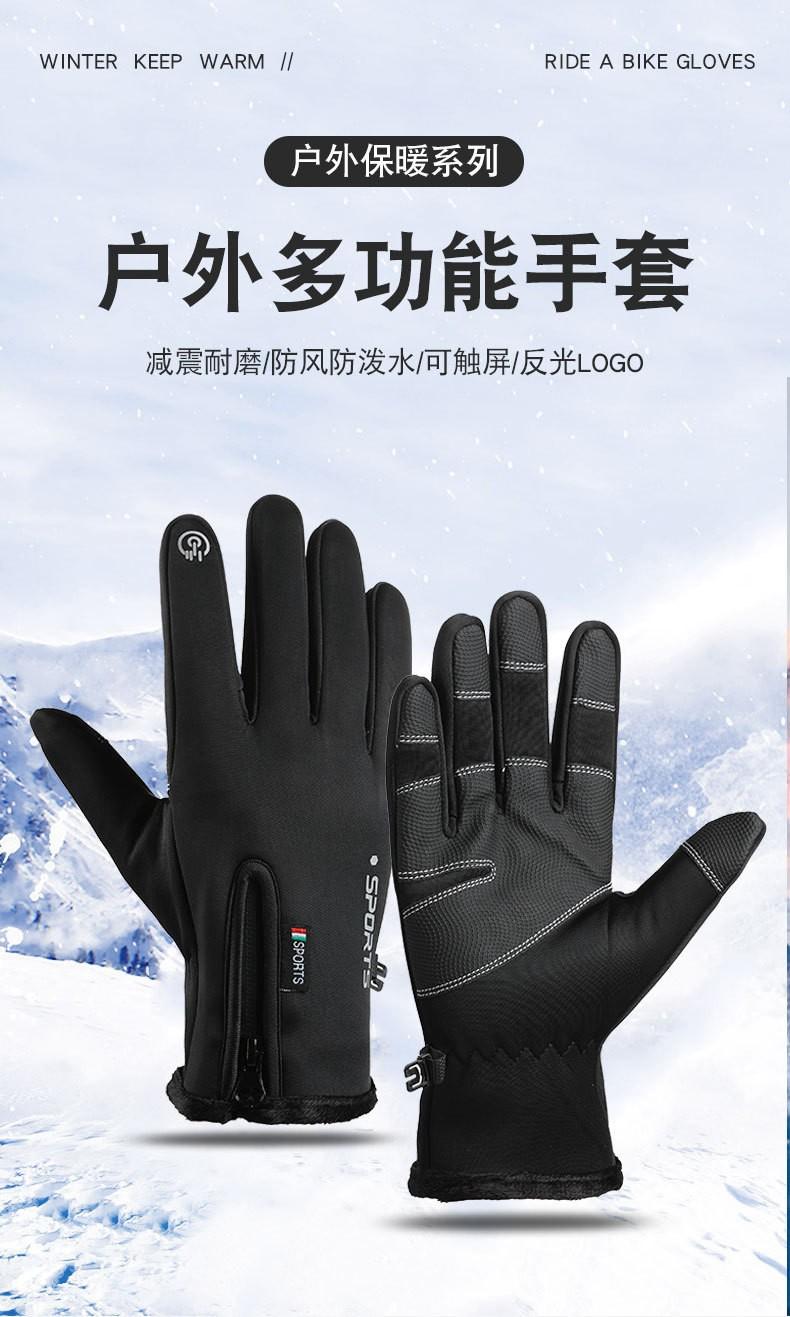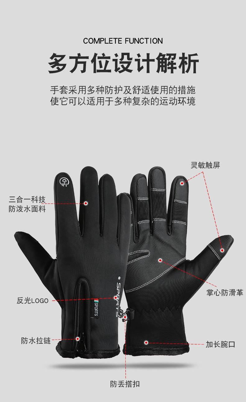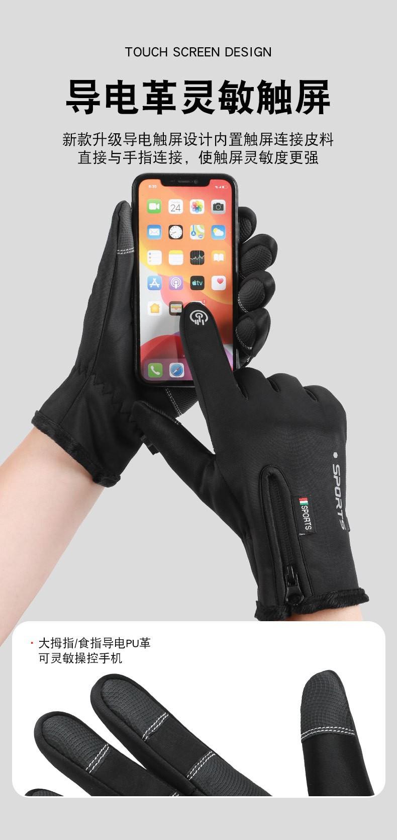 Luvas Impermeáveis com Tela Sensível ao Toque para Exterior, Luvas Quentes para Esqui e Ciclismo de Inverno, Luvas Corta-vento com Zíper de Dedo Inteiro para Homens e Mulheres