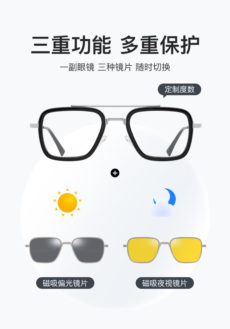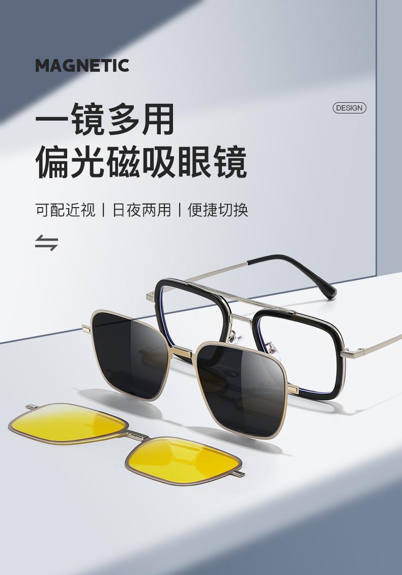 Óculos de sol polarizados masculinos 1.1 dobráveis conjunto magnético óculos de sol podem ser equipados com óculos de miopia armação anti-luz azul 7701