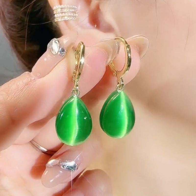 Primavera 2023 Nova Pedra Olho de Gato Fivela de Orelha em Forma de Gota Moda Simples Clássica Elegante Requintado Brincos de Emagrecimento para Mulheres