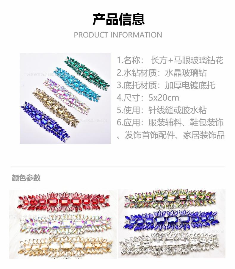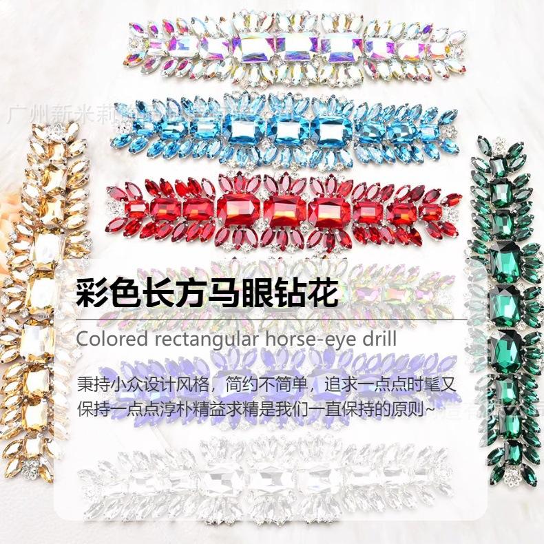 Cross-border venda quente retangular cavalo olho de vidro flor de diamante DIY terno vestido strass cadeia sapatos decorativos saco de cristal acessórios