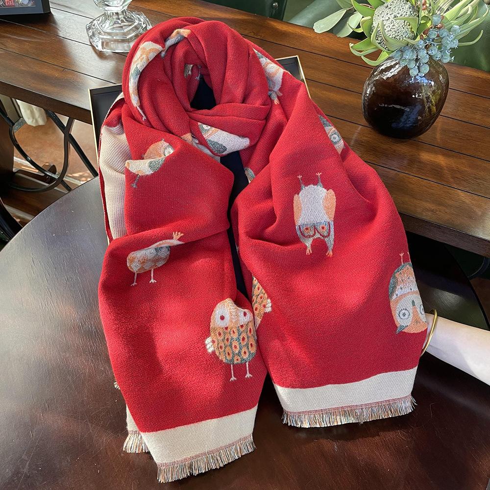 Compre Outono e inverno novo cachecol dupla face feminino desenho animado coruja cashmere-like versátil grosso quente xale cachecol de alta qualidade no atacado no Joom.pro