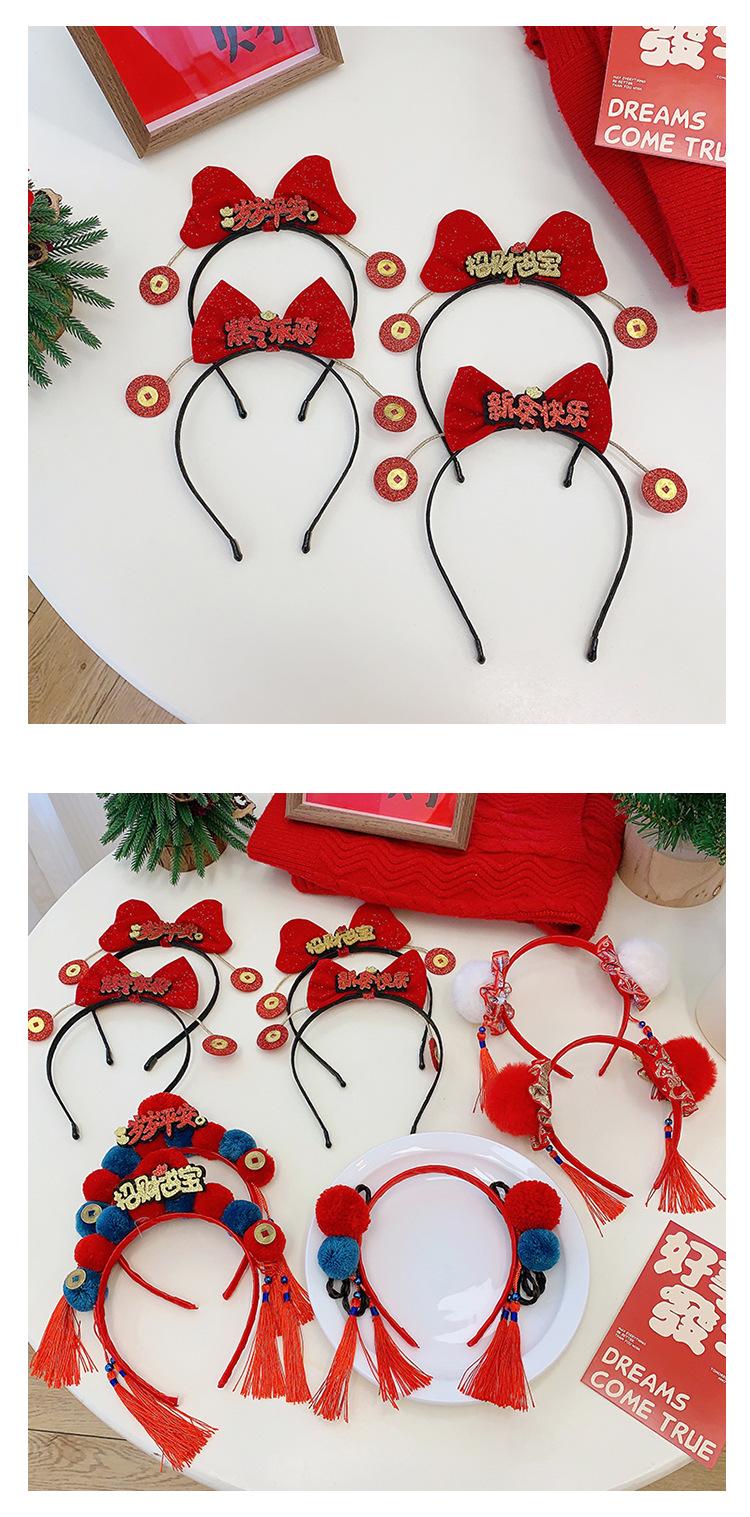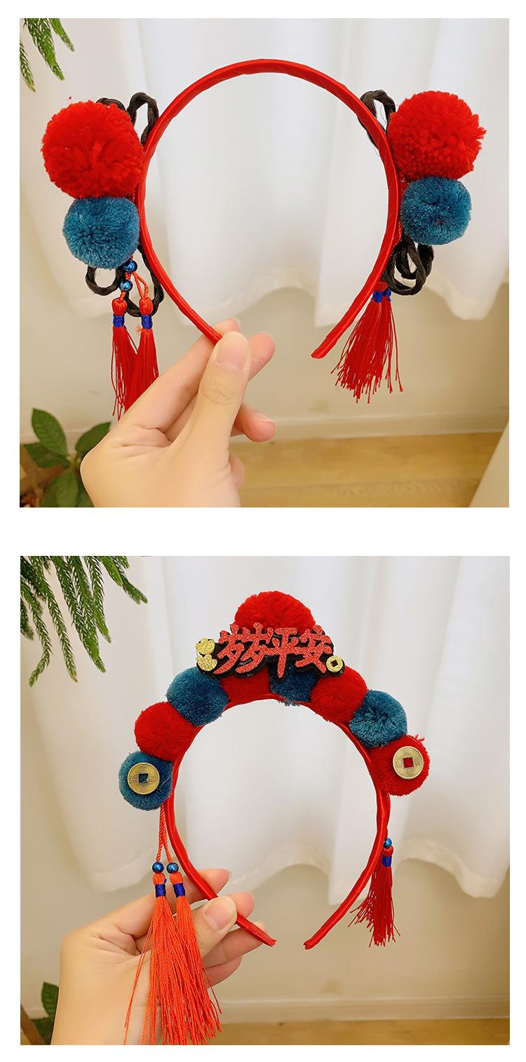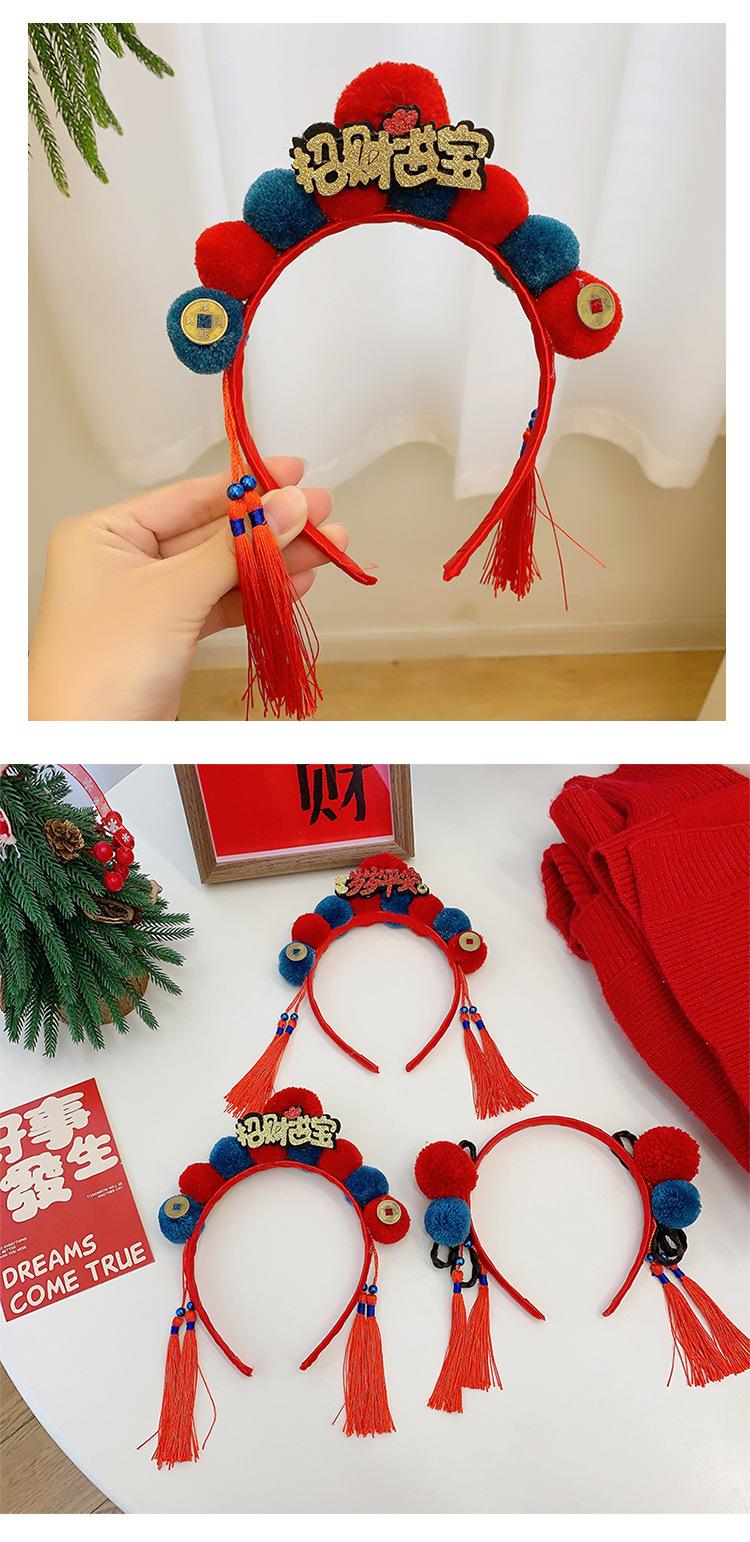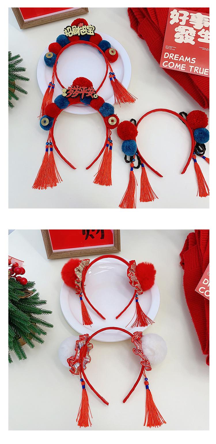 Dia de Ano Novo cocar festivo cabelo vermelho bola headband estilo chinês borla arco headband Dragão ano de pelúcia acessórios para o cabelo