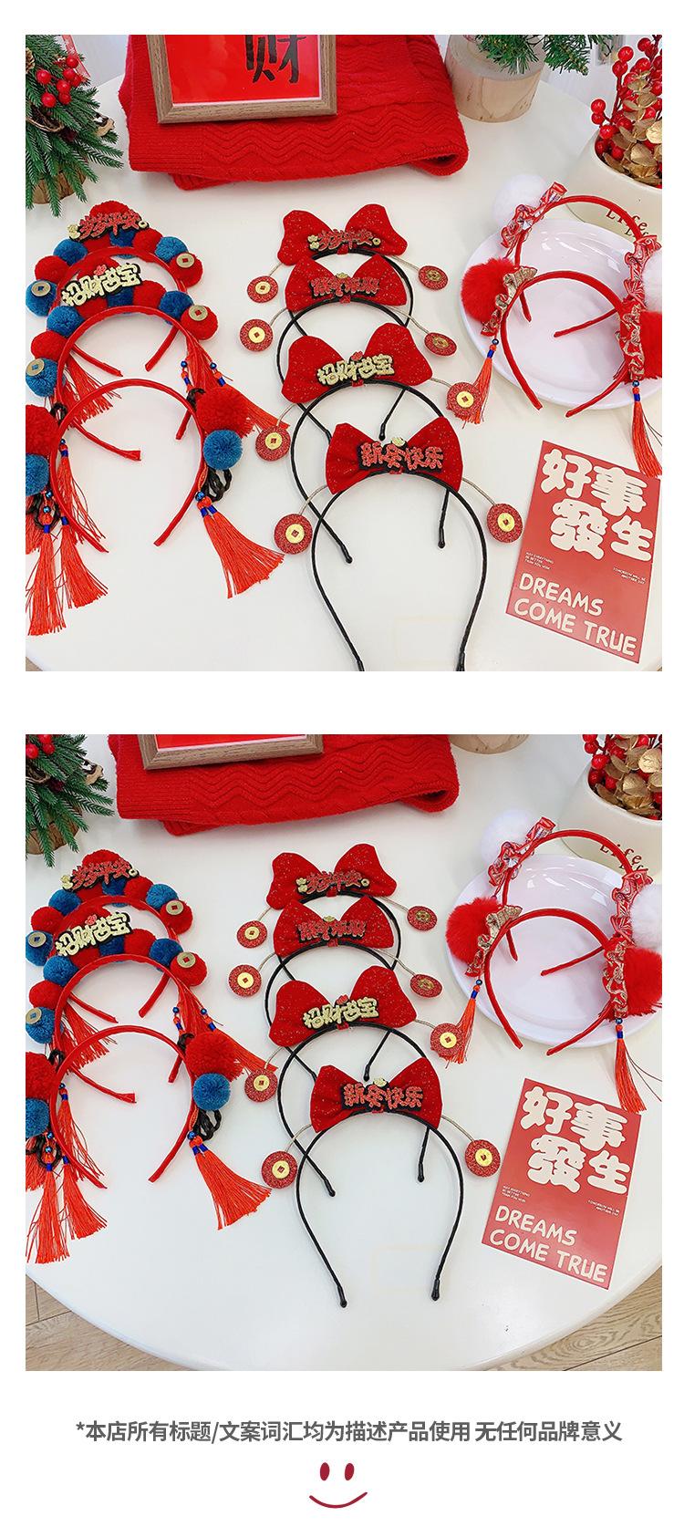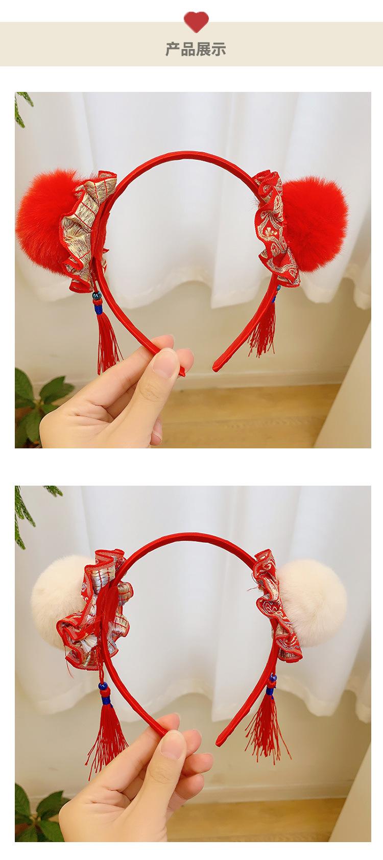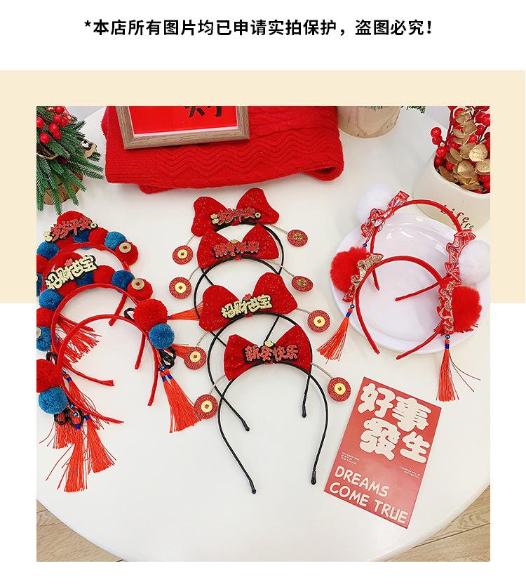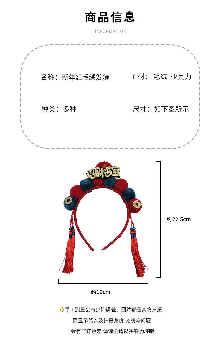 Dia de Ano Novo cocar festivo cabelo vermelho bola headband estilo chinês borla arco headband Dragão ano de pelúcia acessórios para o cabelo
