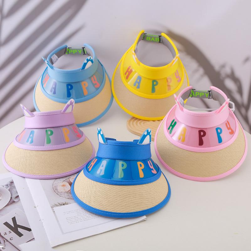 Protetor solar infantil Chapéu verão nova carta de palha da menina vazia chapéu de sol do bebê com aba grande para meninos