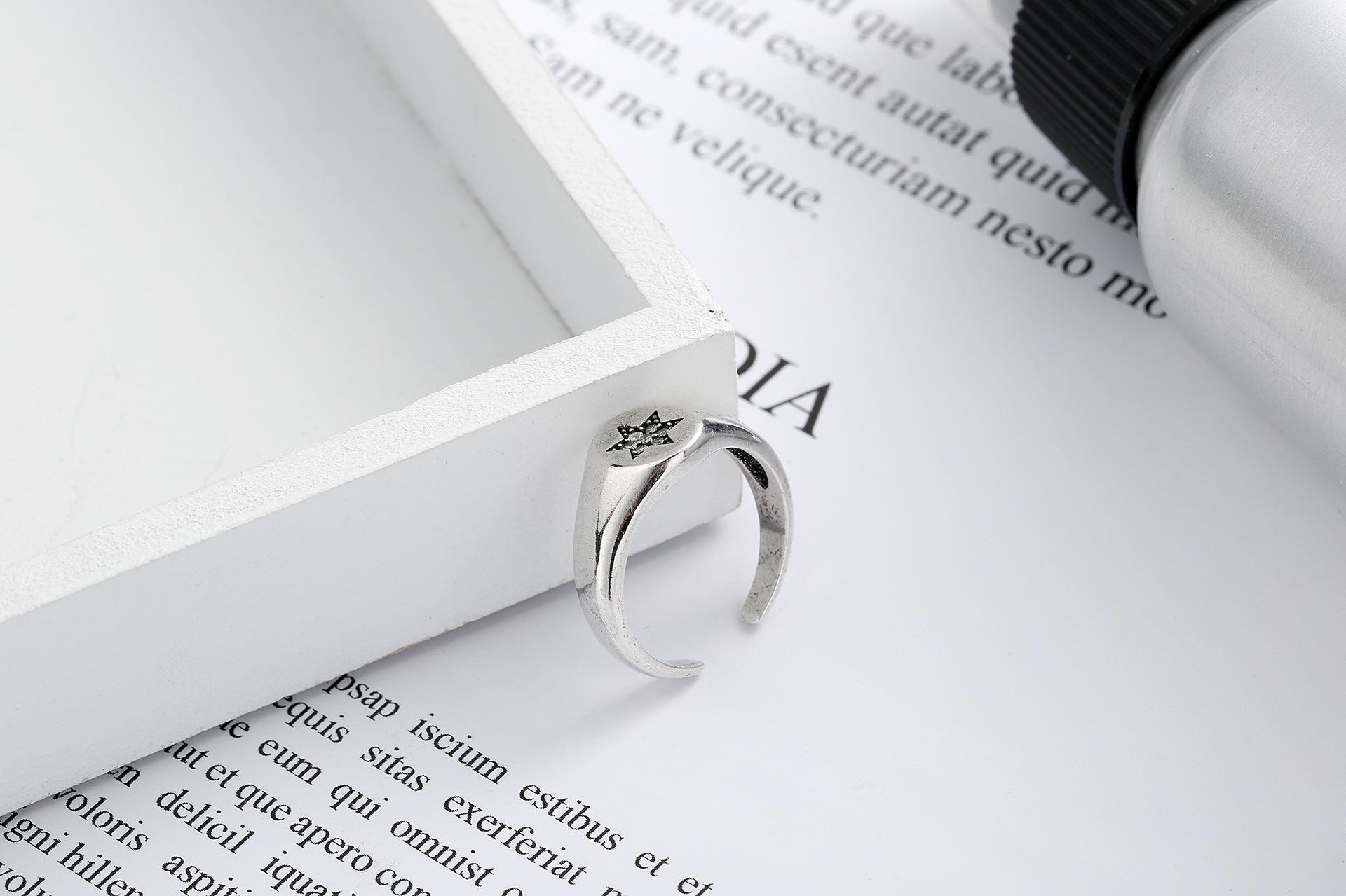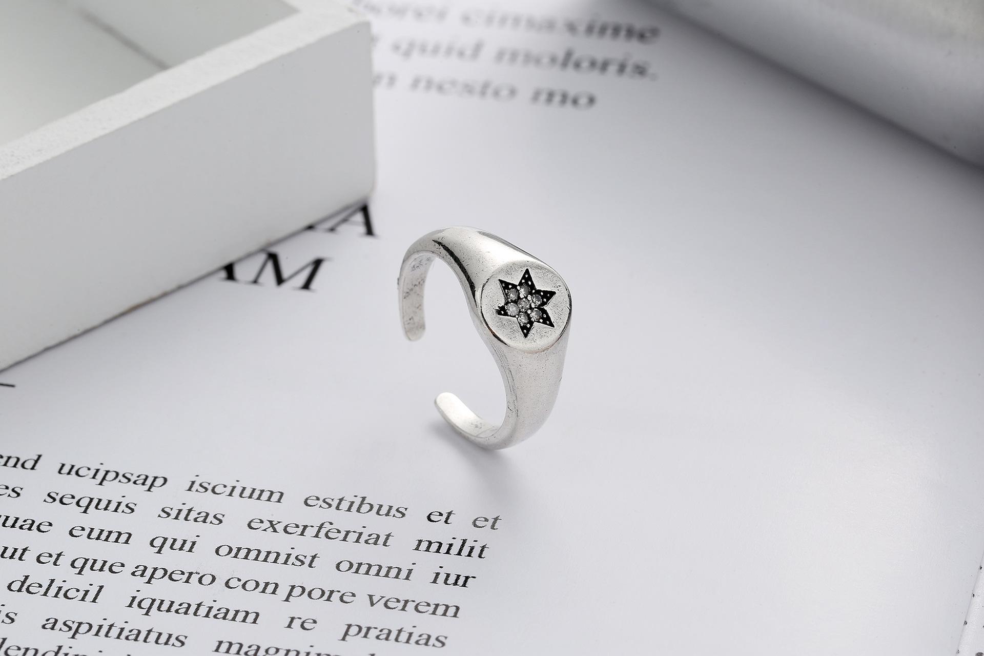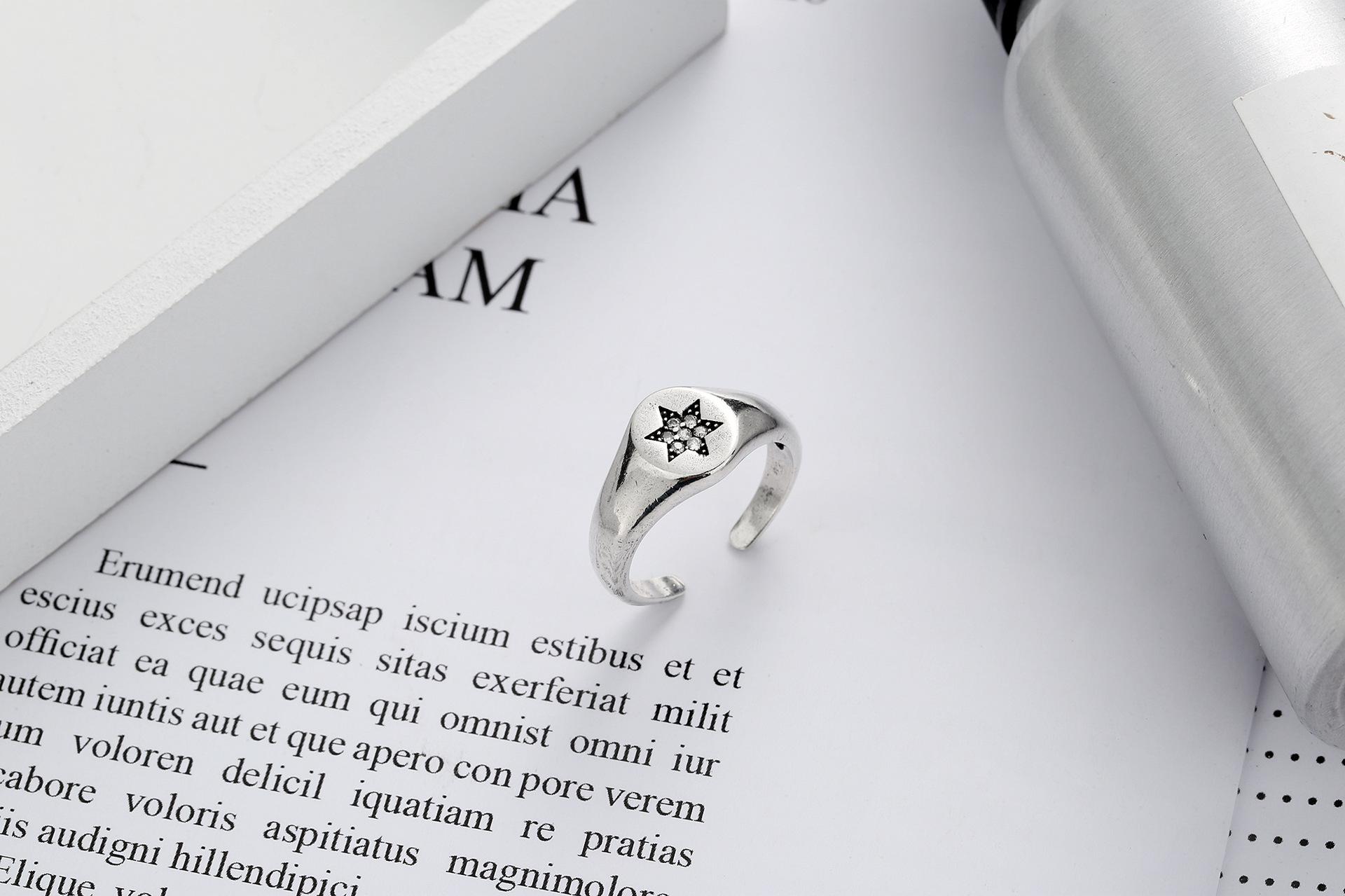 Versão coreana da prata esterlina s925 europeia e americana retro tailandesa estrela de seis pontas anel aberto estrela macarrão anel de dedo