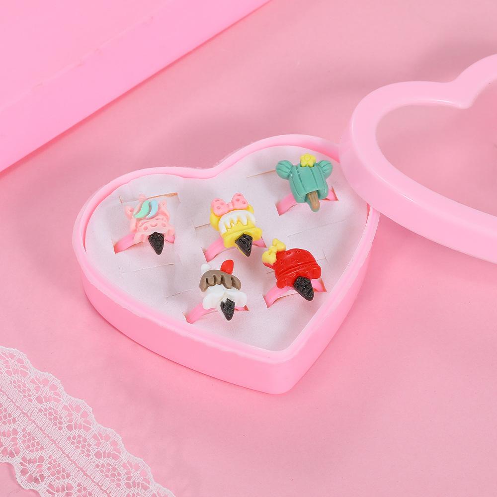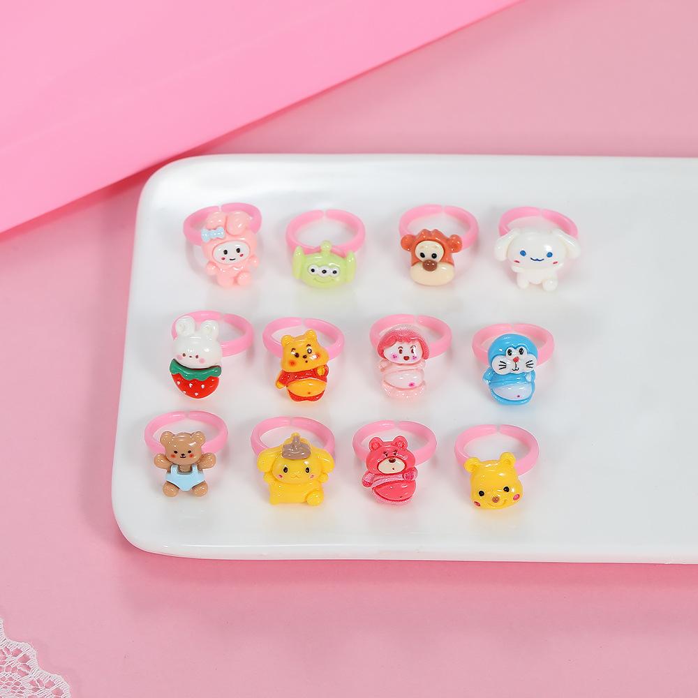 Ins anel infantil joias terno coreano desenho animado brinquedo anel bonito princesa menina presente anel de resina