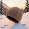 Chapéu de malha de esqui forrado de lã para outono e inverno transfronteiriço, chapéu de lã com proteção para orelhas, quente e espesso, pulôver, chapéu de malha de cor sólida