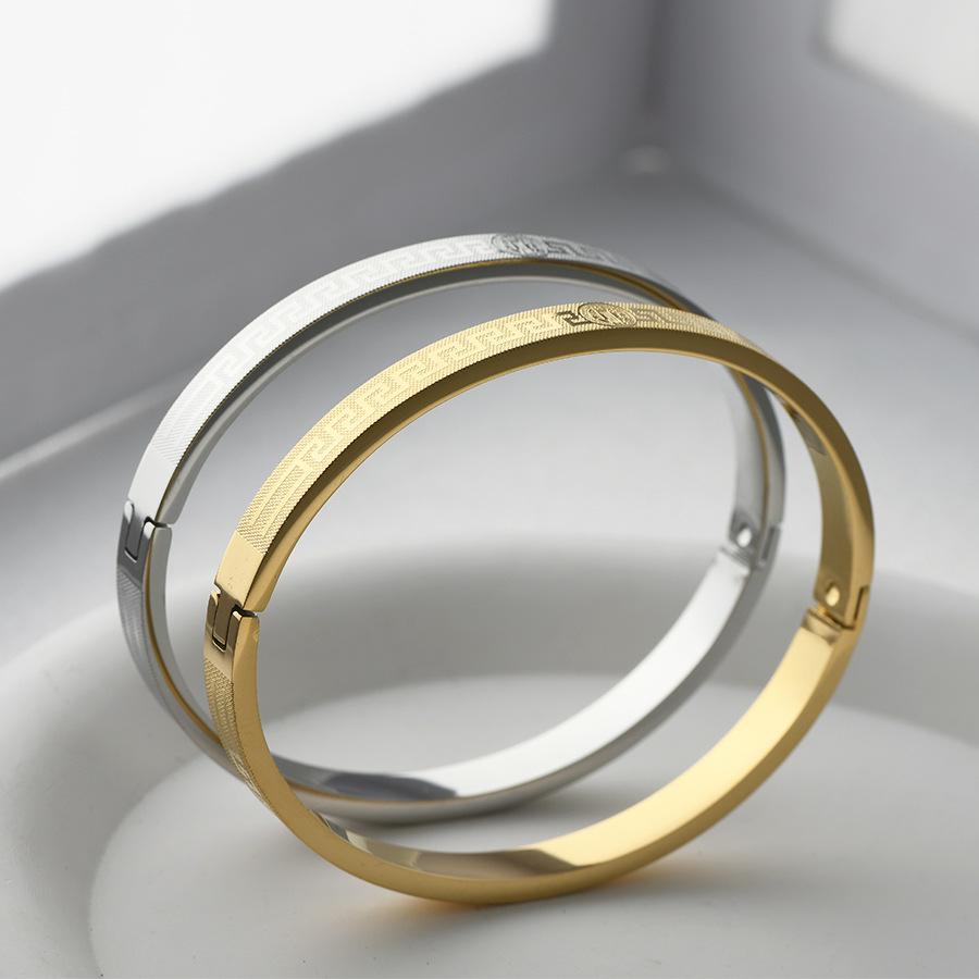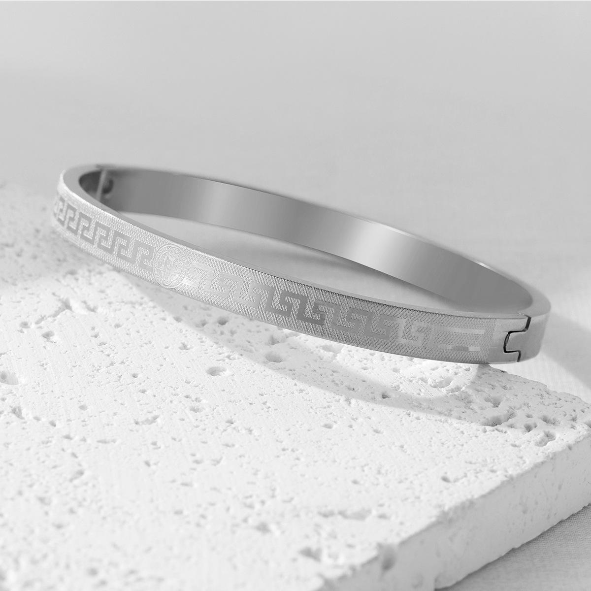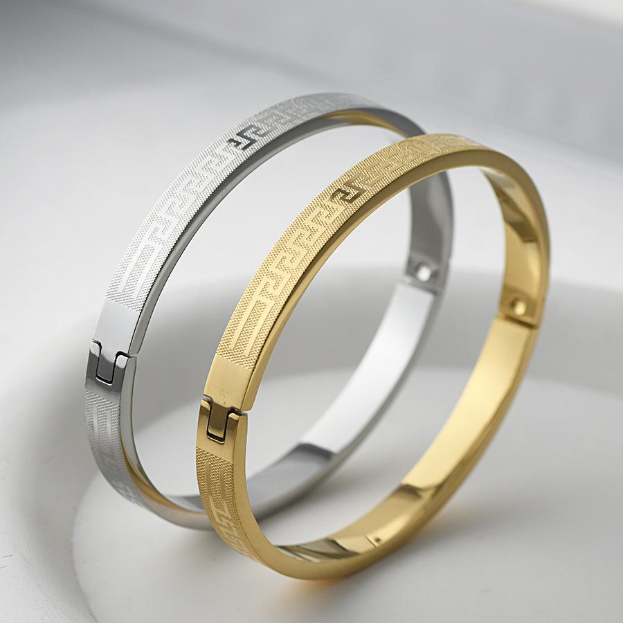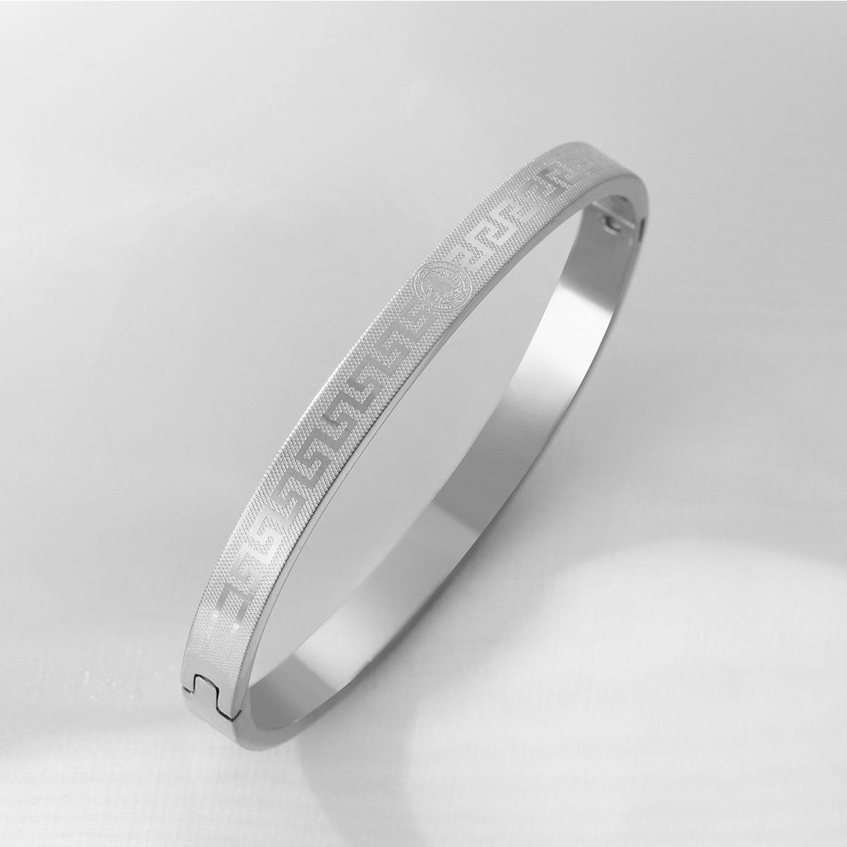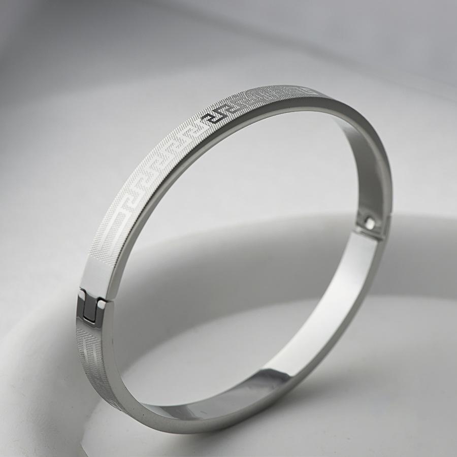 Transfronteiriça nova pulseira de aço de titânio criativo simples corrosão volta palavra grade padrão fivela casal pulseira jóias de aço inoxidável
