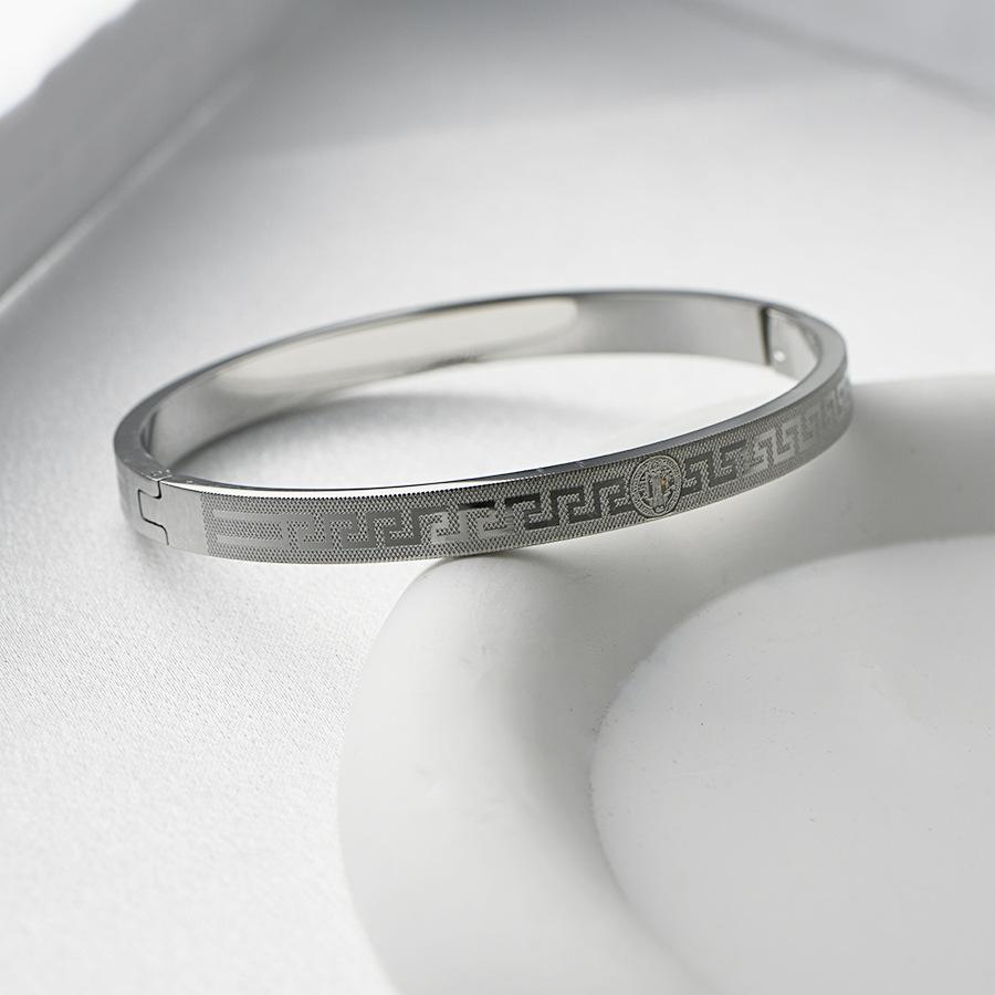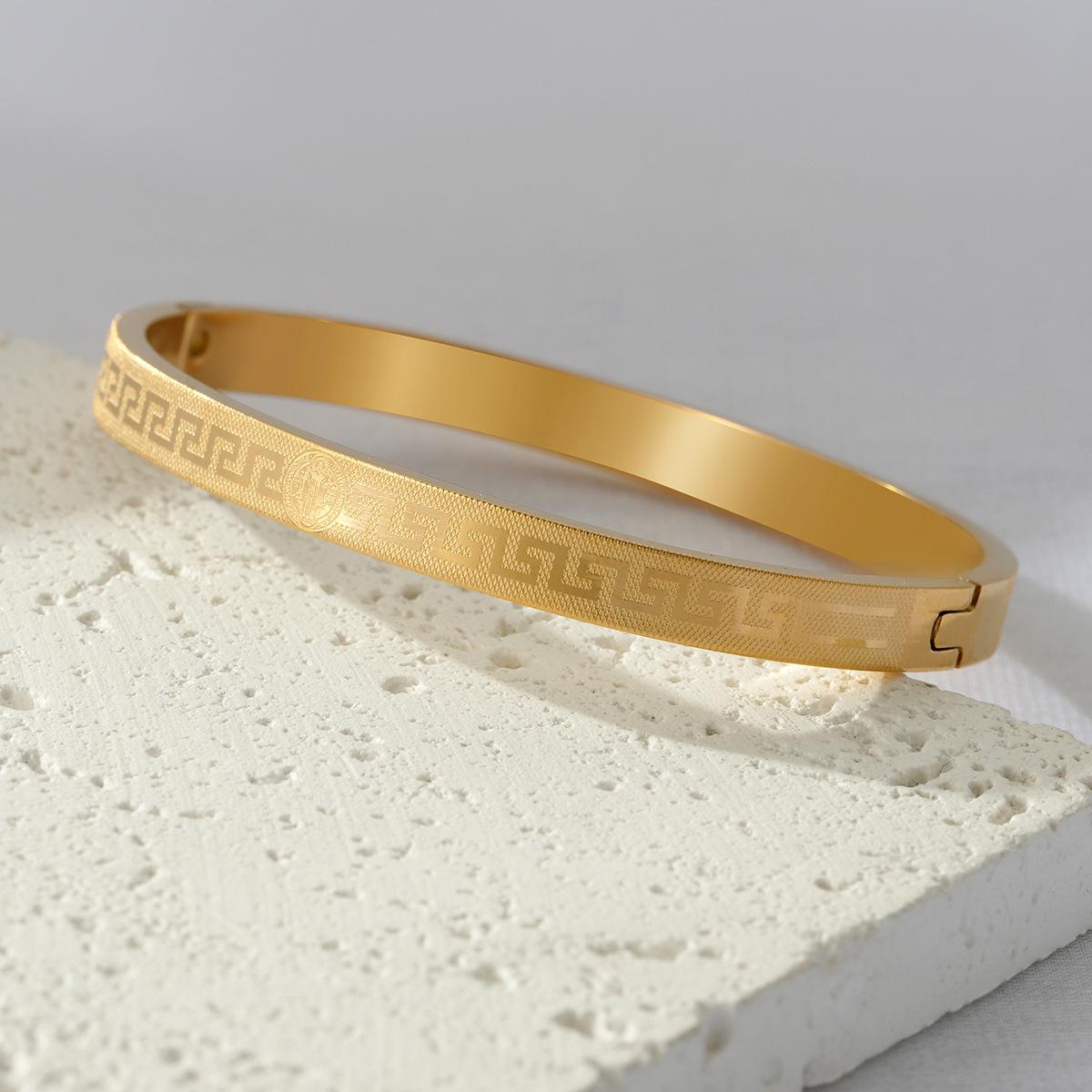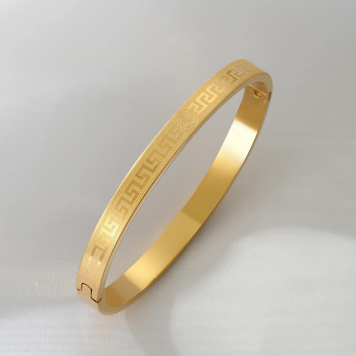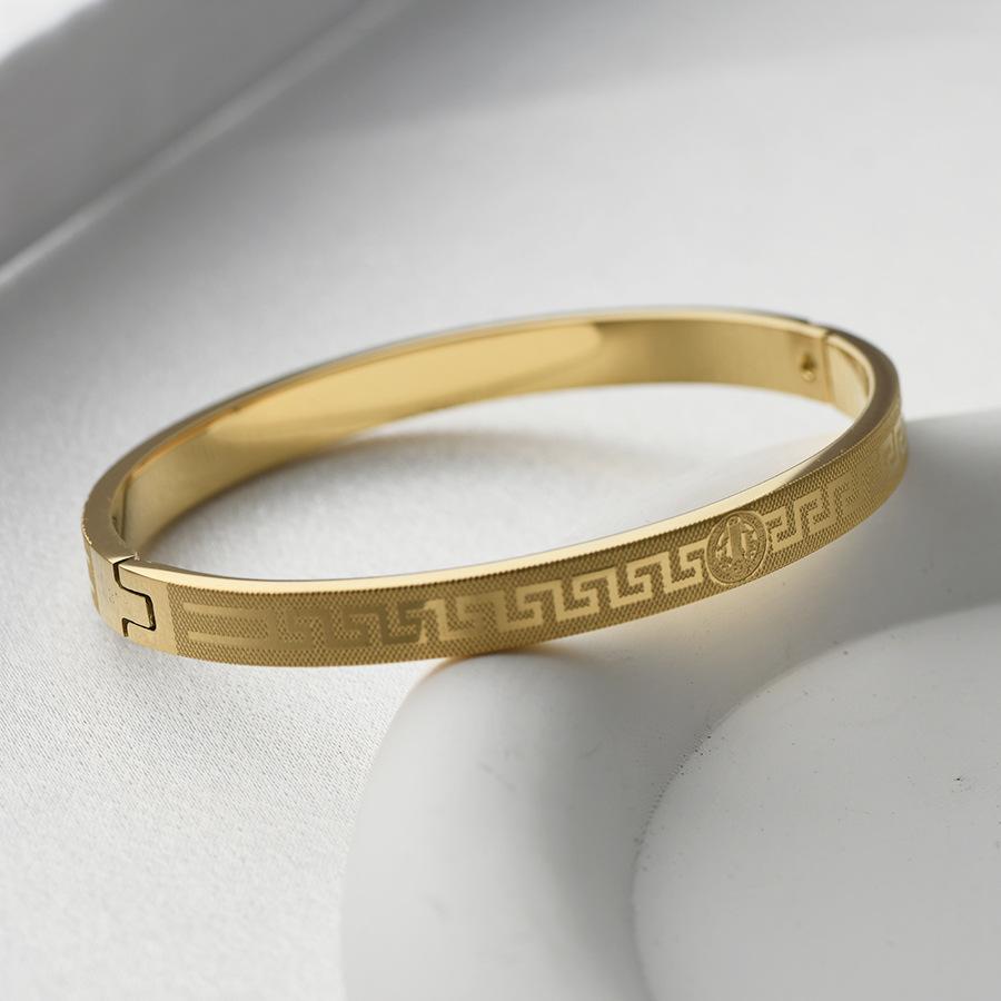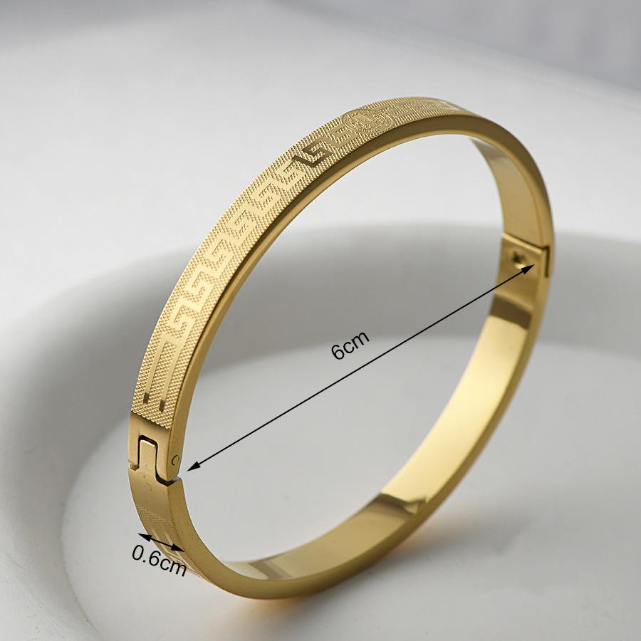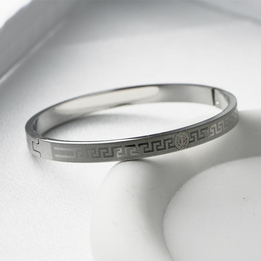Transfronteiriça nova pulseira de aço de titânio criativo simples corrosão volta palavra grade padrão fivela casal pulseira jóias de aço inoxidável