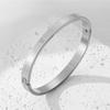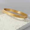 Fabricantes de pulseira de aço de titânio atacado aberto ajustável em forma de c pulseira feminina gravada padrão texto logotipo pulseira de aço inoxidável
