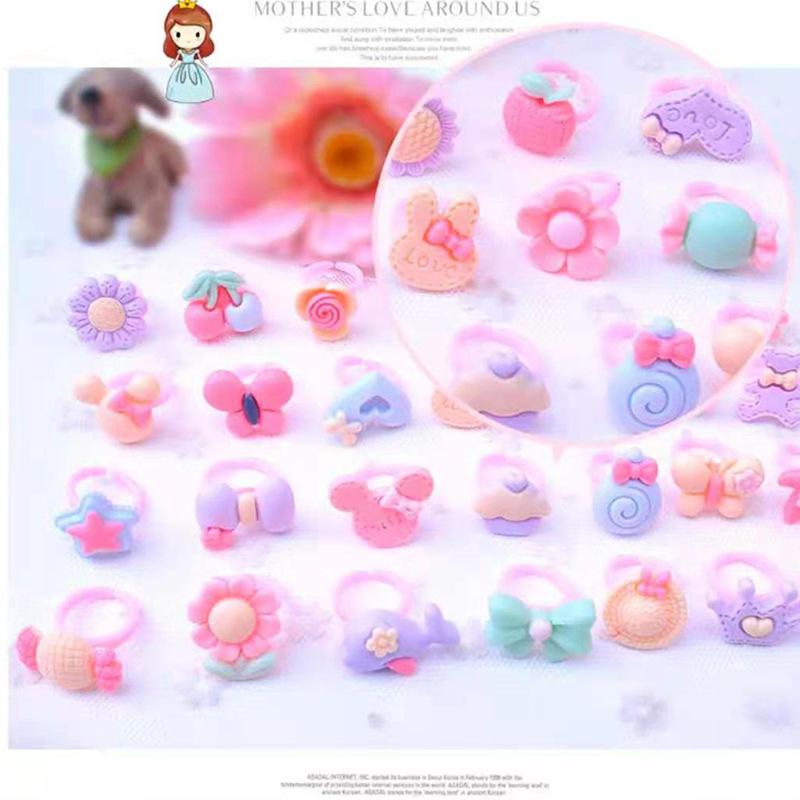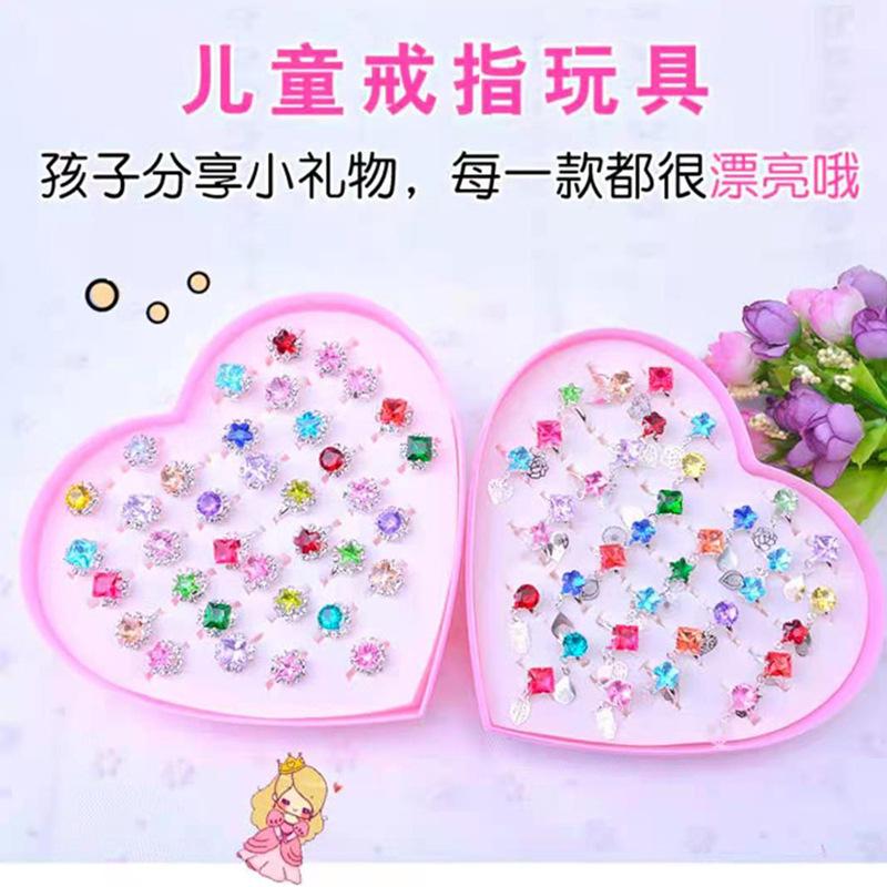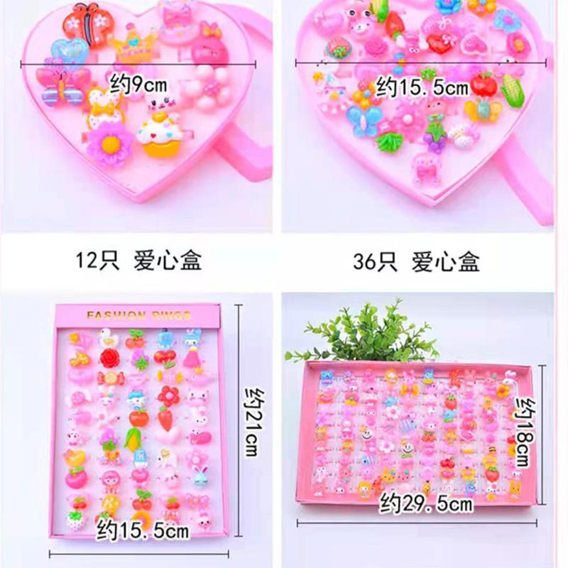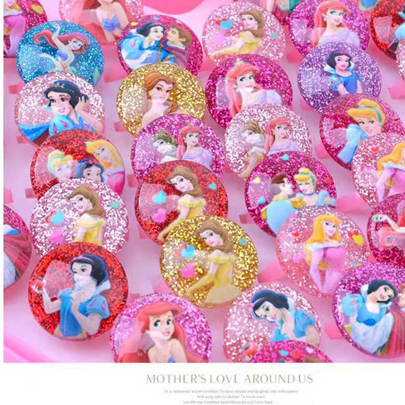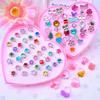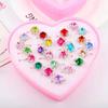 Anel Infantil Meninas Desenho Animado Cristal Anel Conjunto Caixa de Presente Princesa Menina Gema