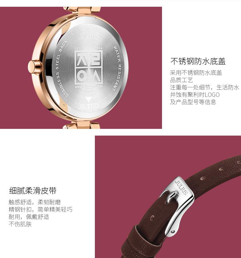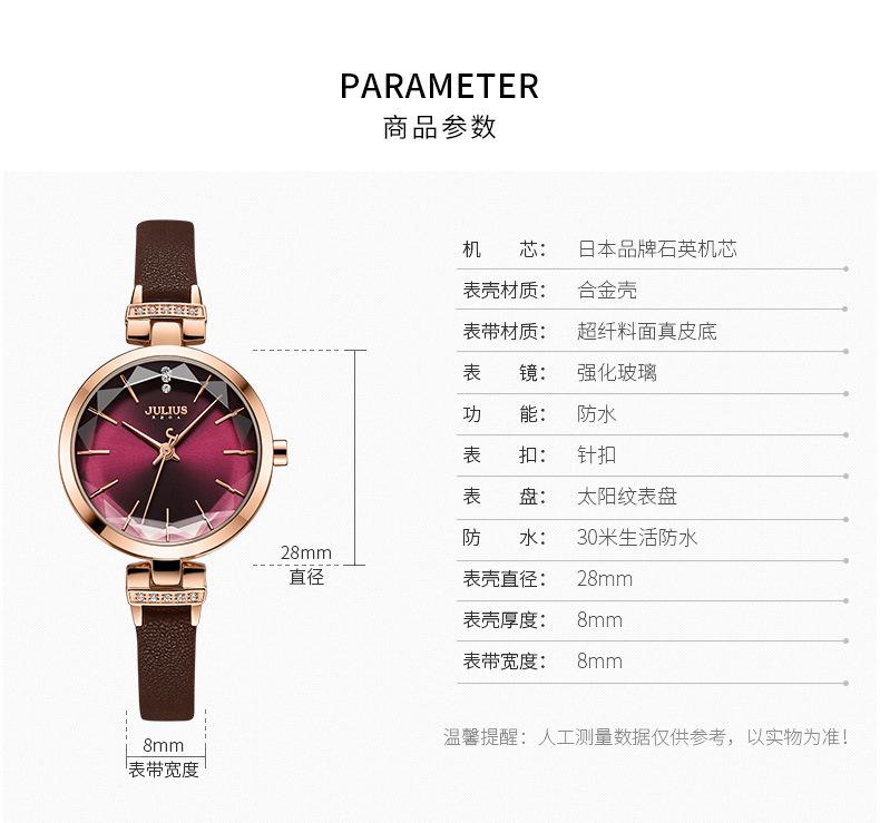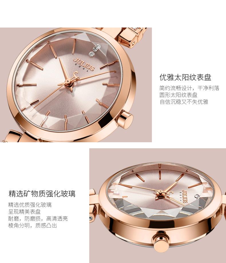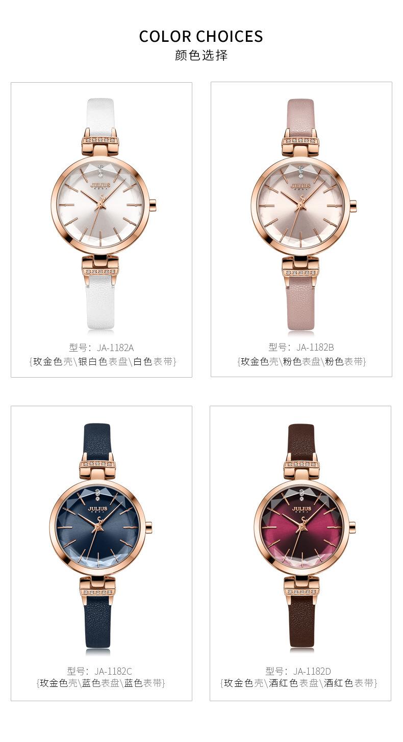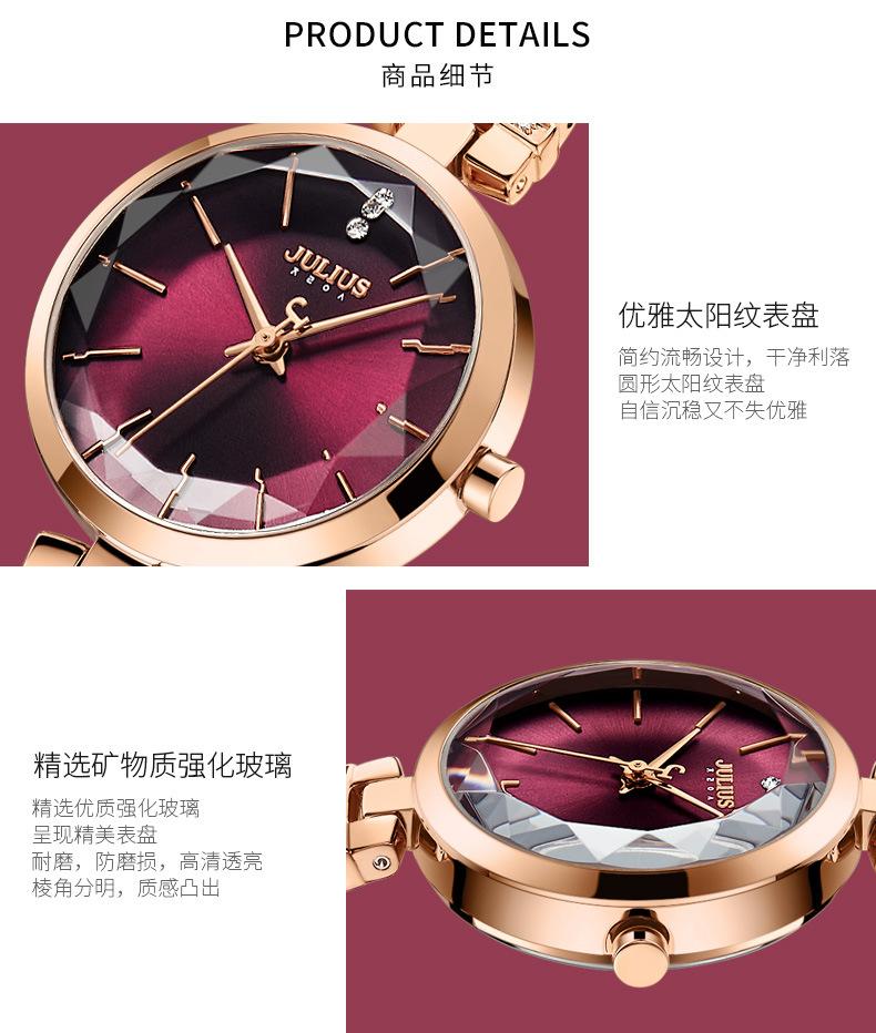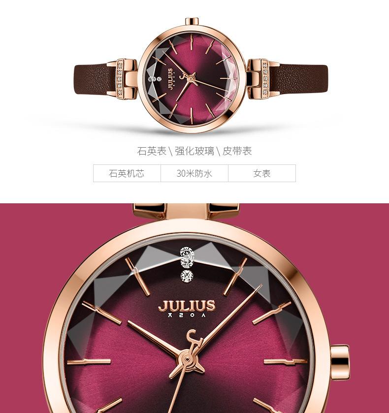 O significado da marca JULIUS é Alegre, Único, Amor, Ideal, Incomum e Brilhante, que é um relógio único pelo qual você vai se apaixonar à primeira vista (Just You Will Love Inimitable Unique Special Watch). A marca JULIUS leva esse nome e possui 7 séries principais (série clássica, série pulsante, série de pulseira, série de exploração, série de casal, série masculina e série de edição limitada).