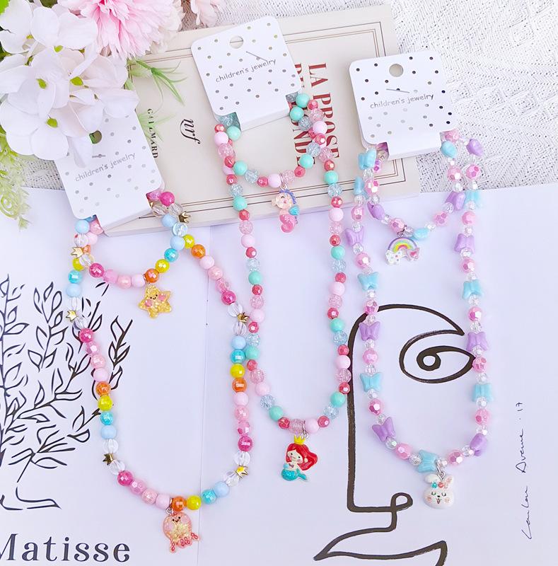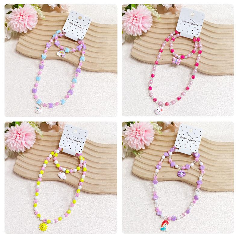 [Sim] Nova princesa colar pulseira terno colorido pulseira frisada cartoon menina jóias terno atacado