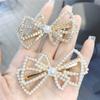 Grampo de cabelo com strass e diamantes coreanos, grampo de cabelo simples para meninas, franja, clipe de bico de pato, pérola, clipe lateral, laço, grampo de cabelo