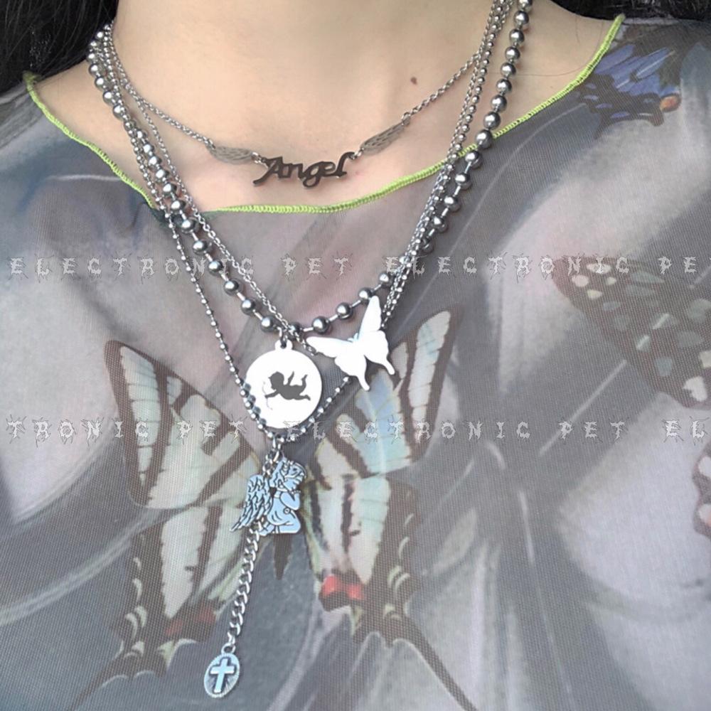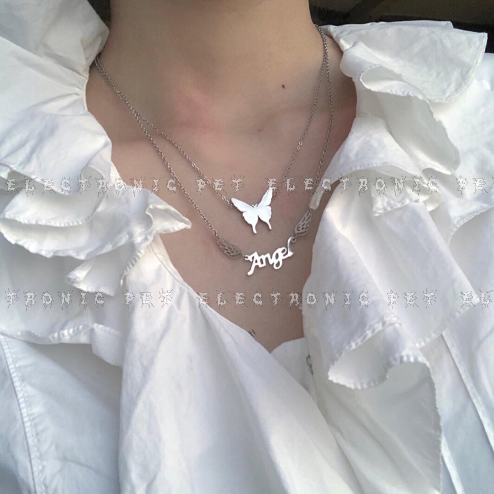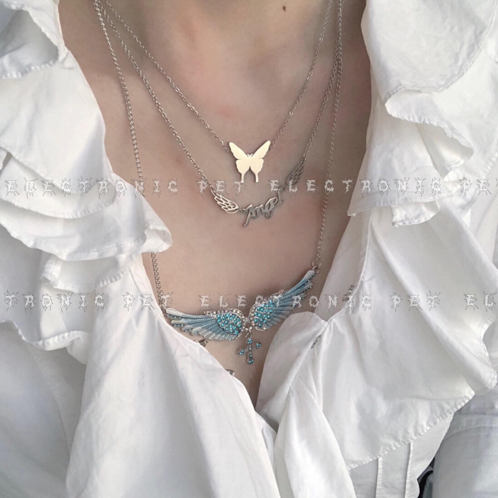 Compre @ anjo asas de anjo prata borboleta clavícula colar de aço titânio não-desbotamento no atacado no Joom.pro