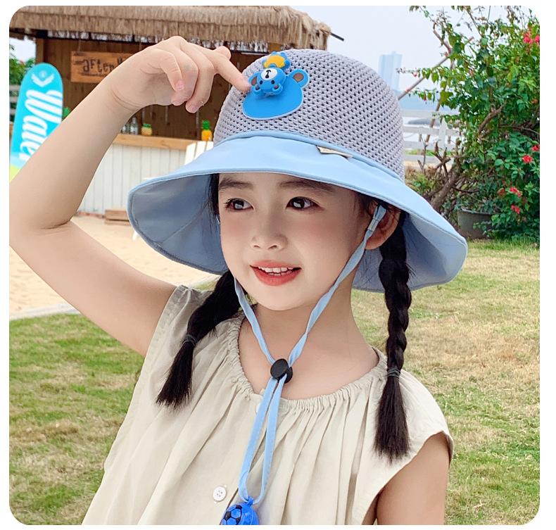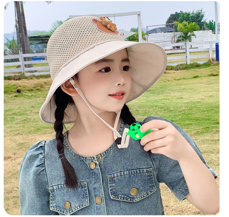 Protetor solar infantil Chapéu Verão Meninas Proteção UV Chapéu de sol Bebê Cartoon Malha Grande Cornija Sombra Pescador Chapéu