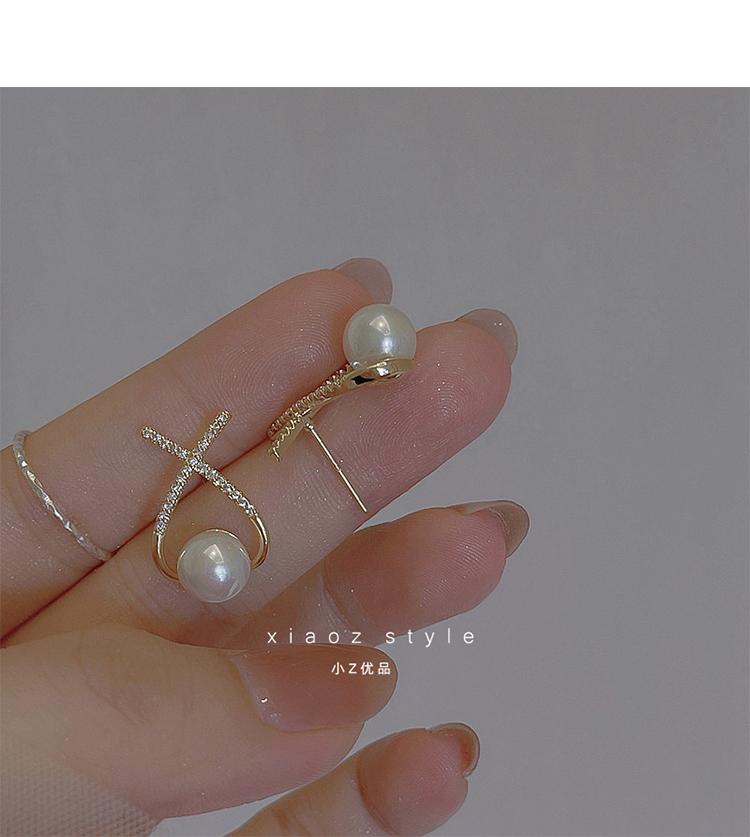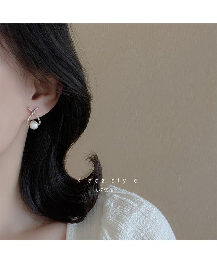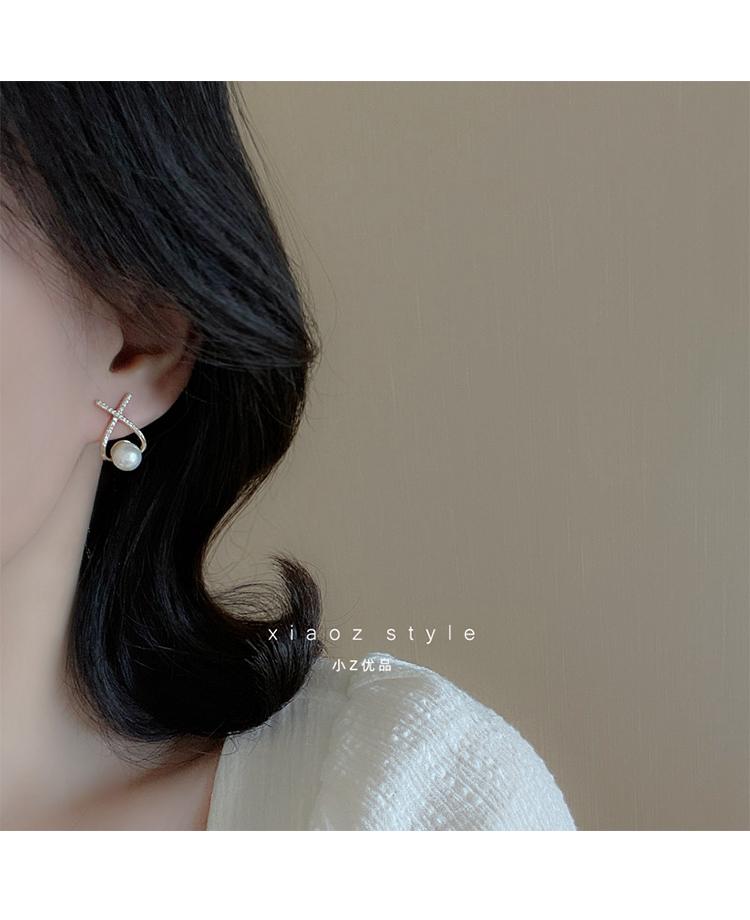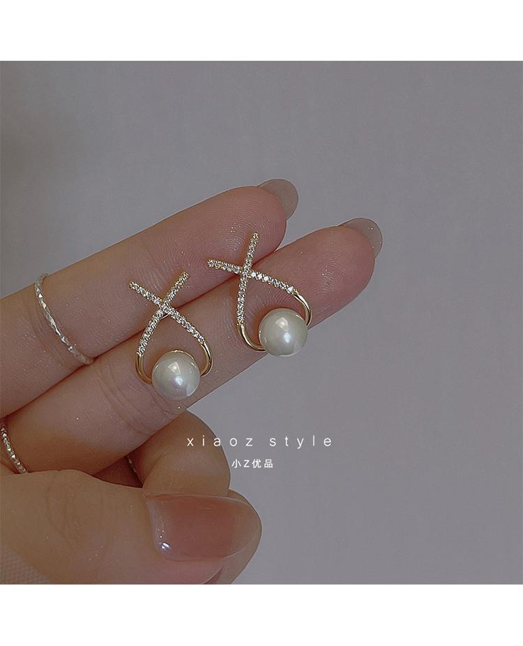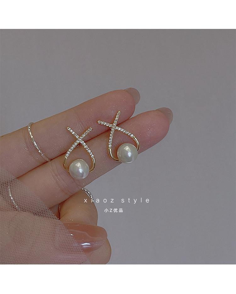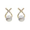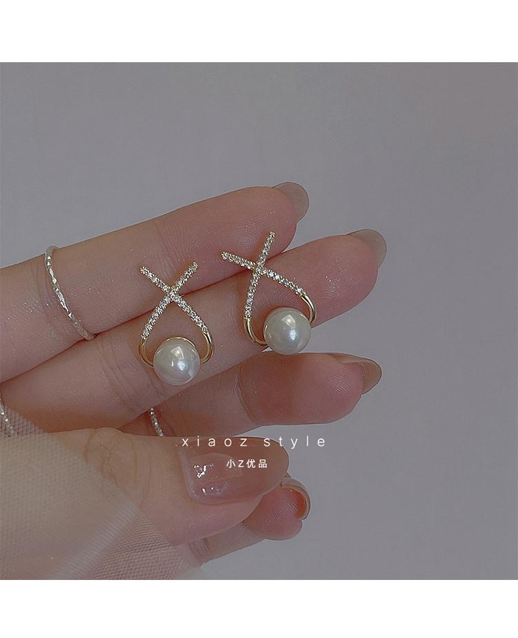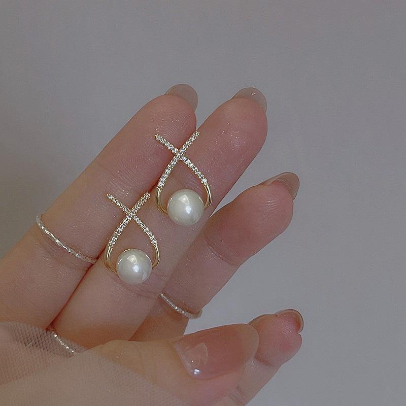 Compre Brincos de pérolas elegantes em forma de cruz para mulheres, novo design moderno de nicho, brincos leves e luxuosos, brincos simples no atacado no Joom.pro