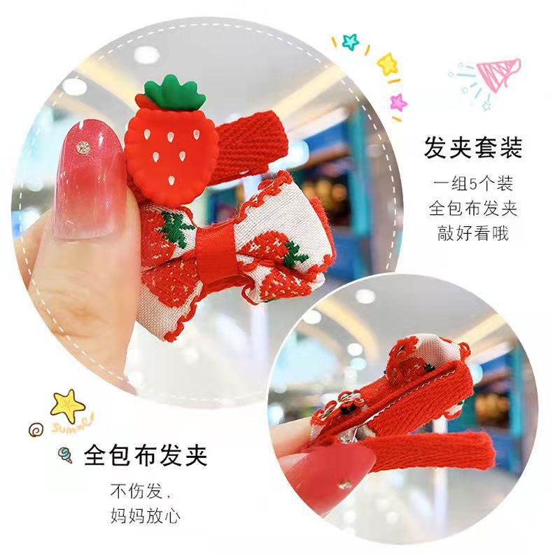 2#Playful pink strawberry bow crown rabbit 5 pieces
