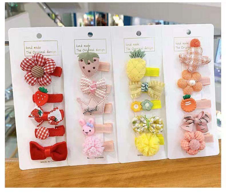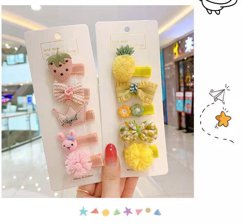 1#5 pieces of cute yellow pineapple bows, 2#Playful pink strawberry bow crown rabbit 5 pieces, 3#5 pieces of c...