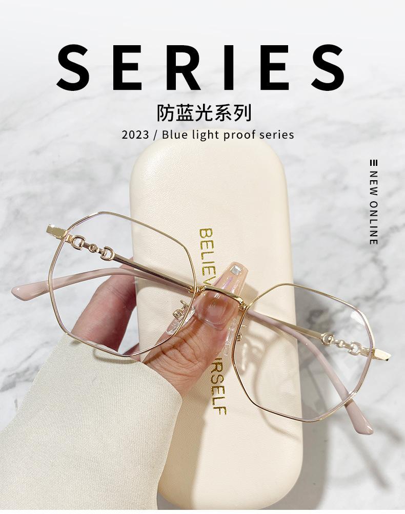 Armação de óculos das mulheres para miopia pode ser equipado com poder da lente quadrado rosto redondo liso polígono óculos de ouro sentido avançado de rosto pequeno