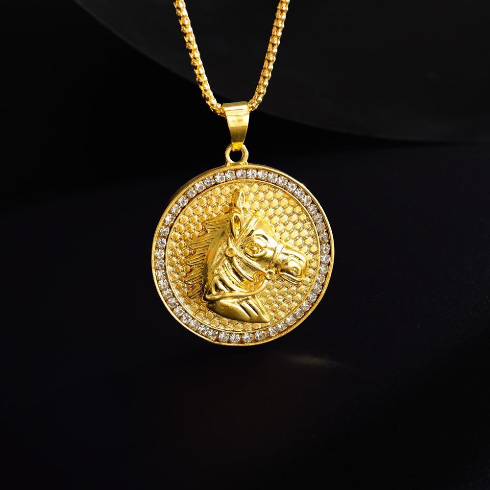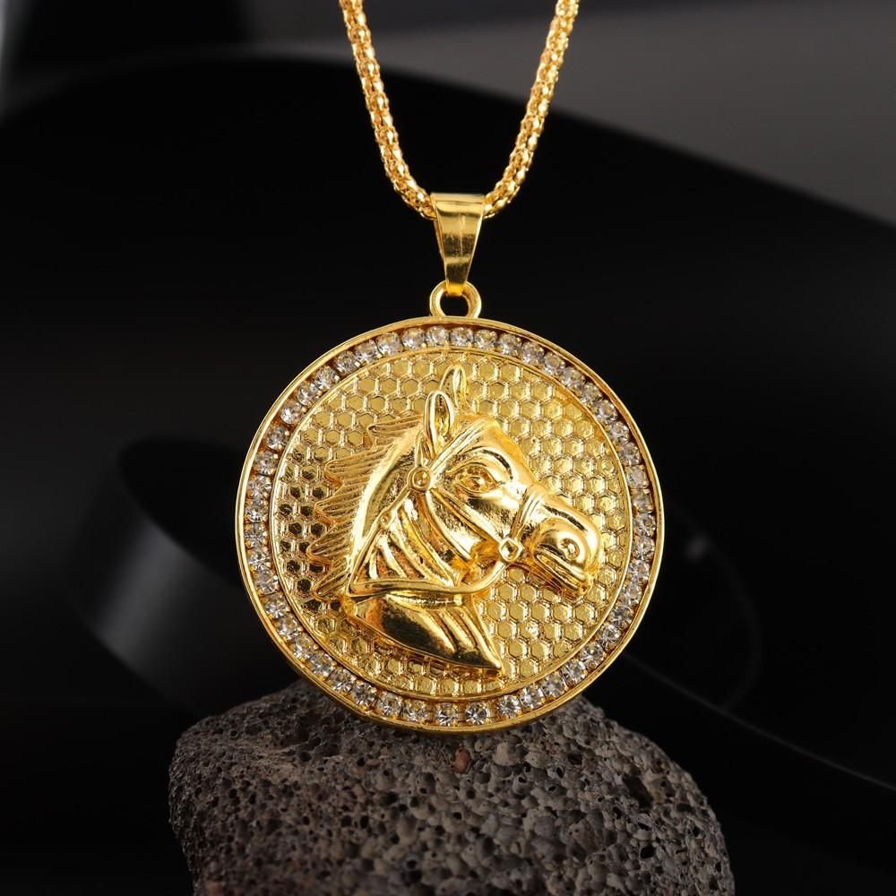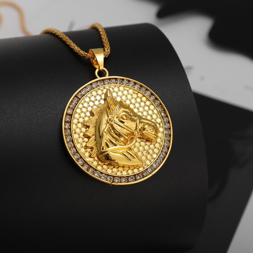 Temu venda quente europeu e americano transfronteiriço novo hip hop banhado a ouro diamante cabeça de cavalo colar Temu entrega de uma peça