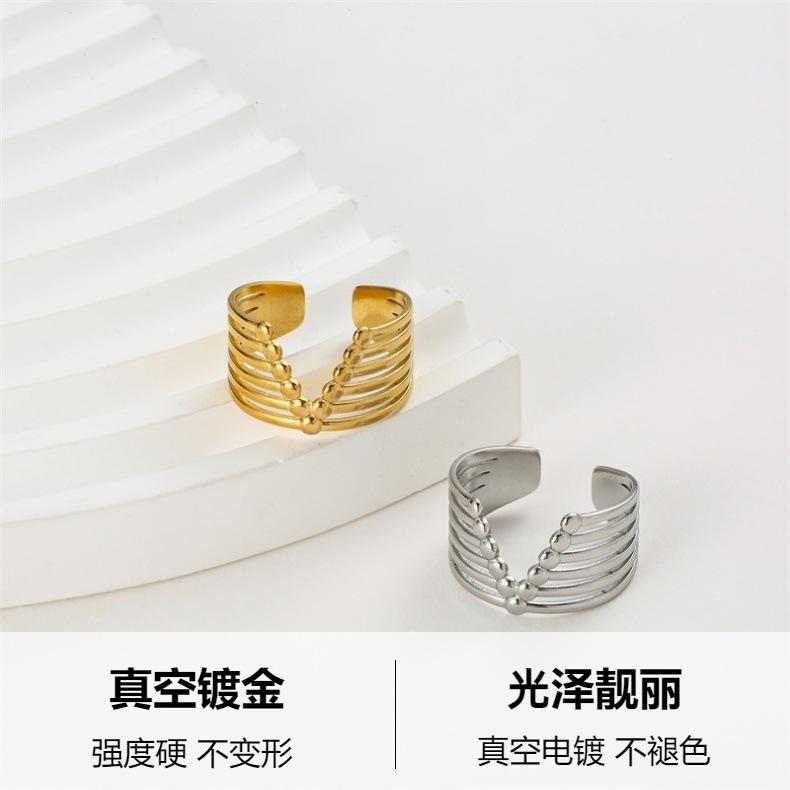 Anel de aço de titânio simples de personalidade de moda de venda quente transfronteiriça Anel de anel de aço inoxidável de abertura de linha de borda de talão feminino