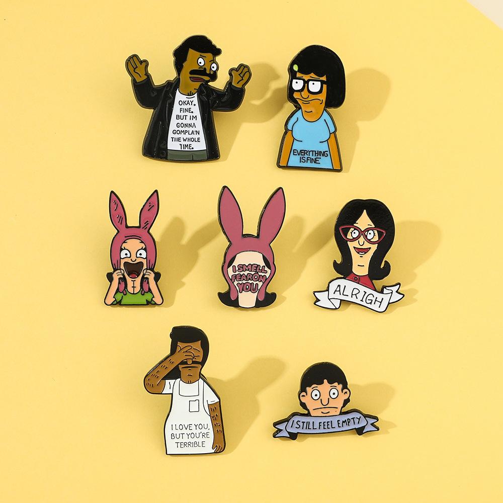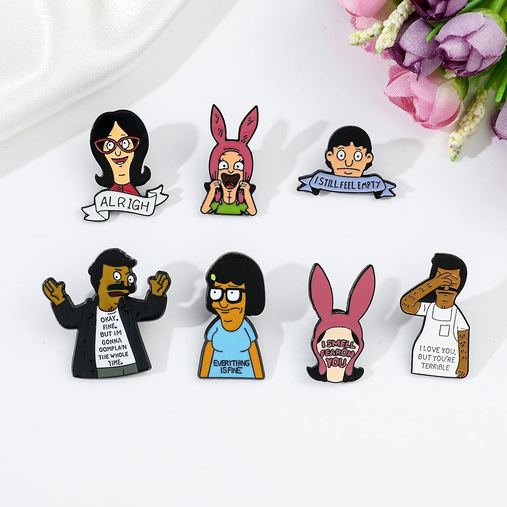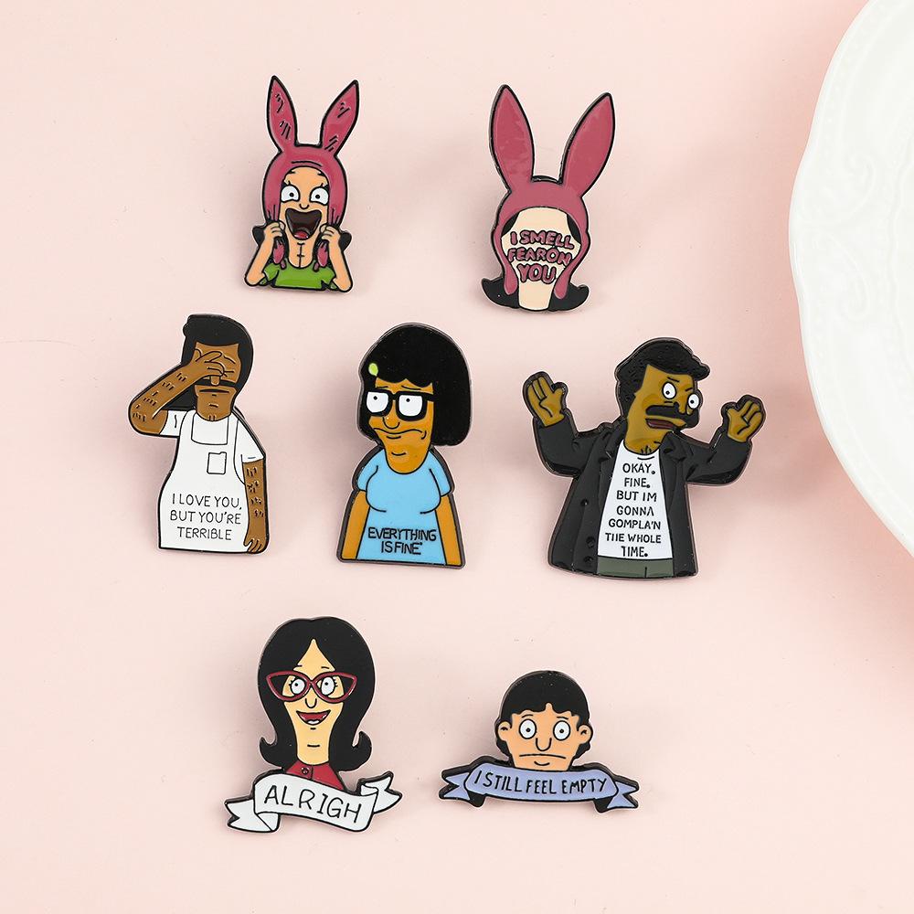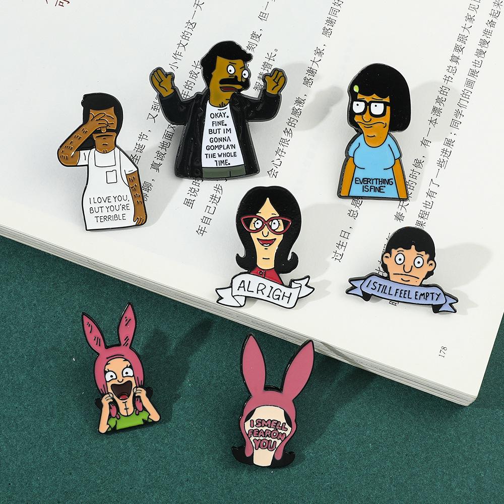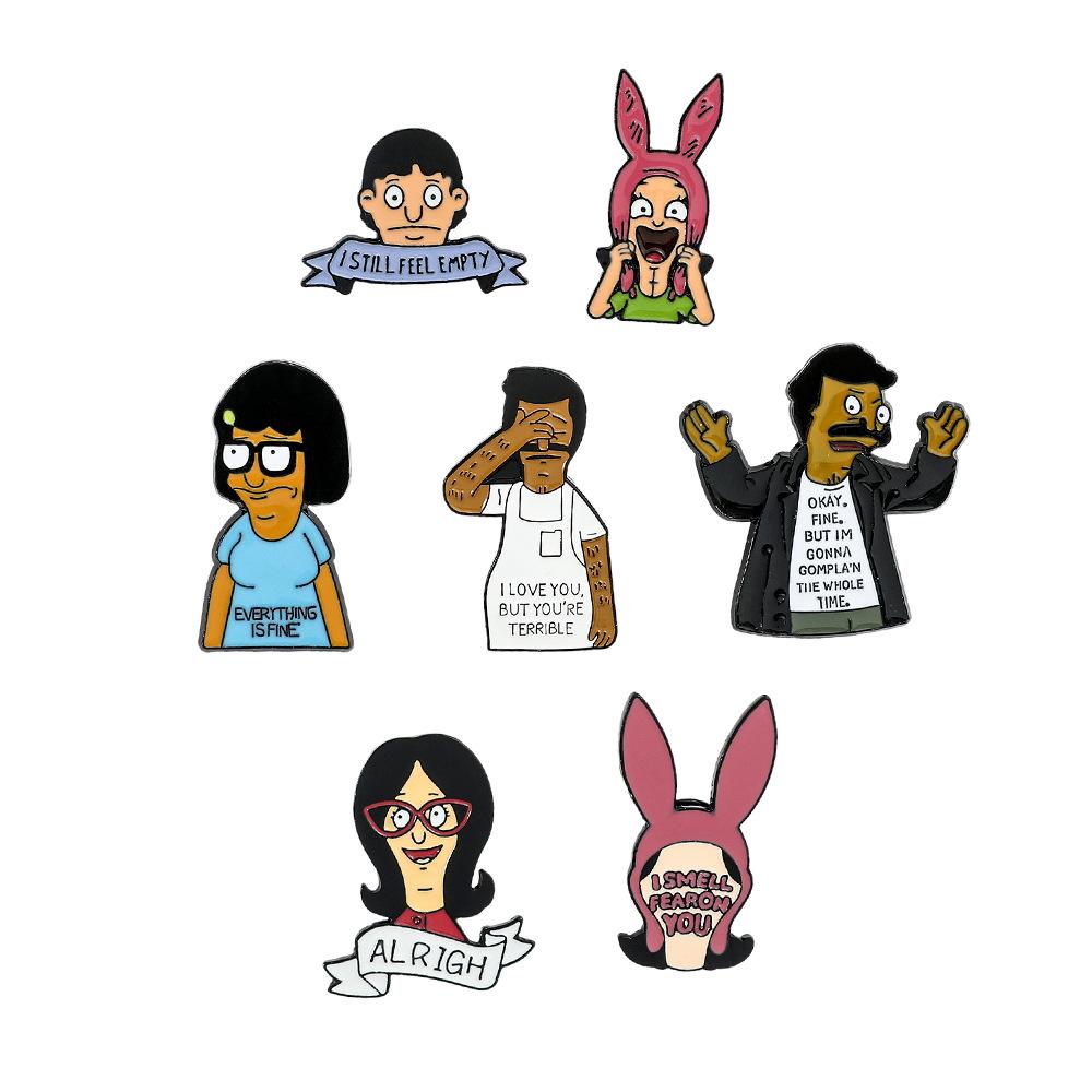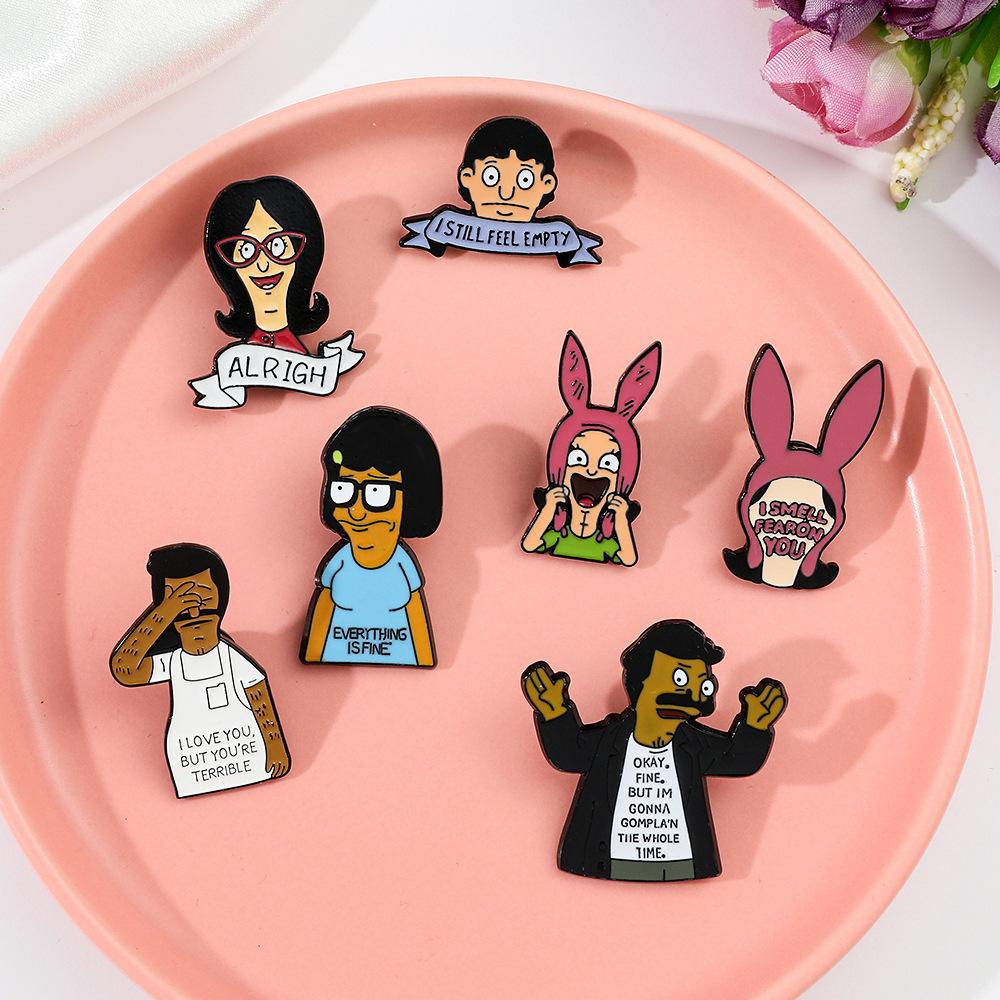 Engraçado personagem de desenho animado periférico distintivo de metal feliz hamburgeríceps loja bobs burgers broche de liga atacado