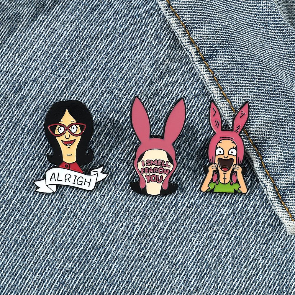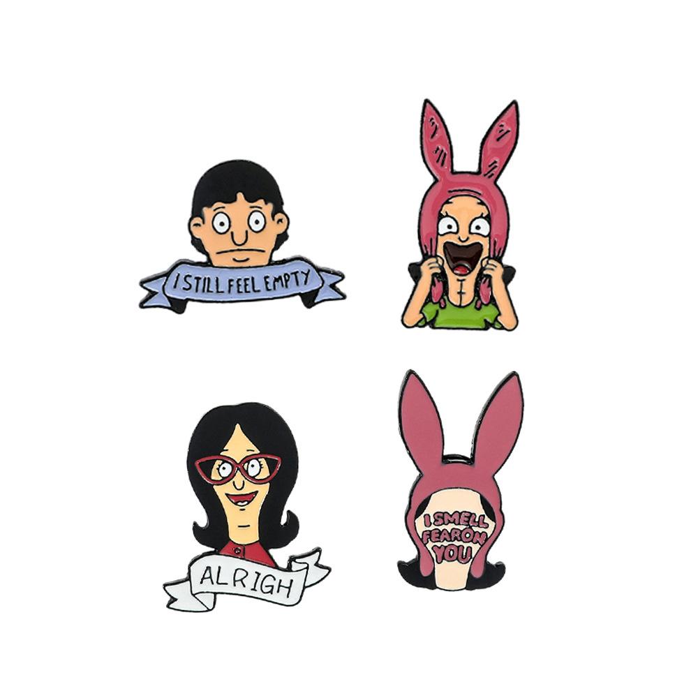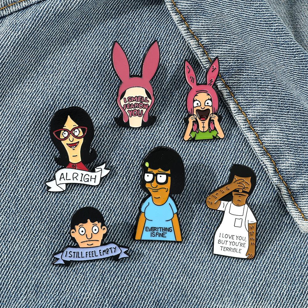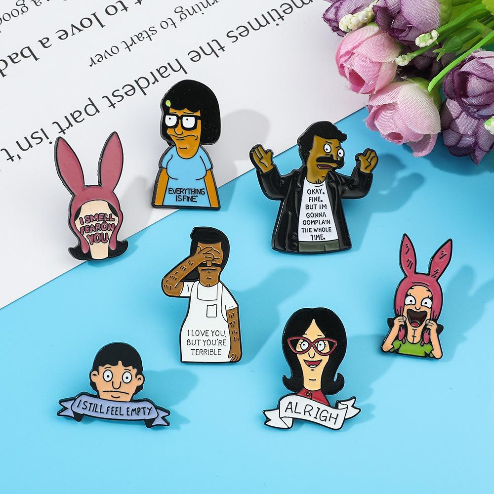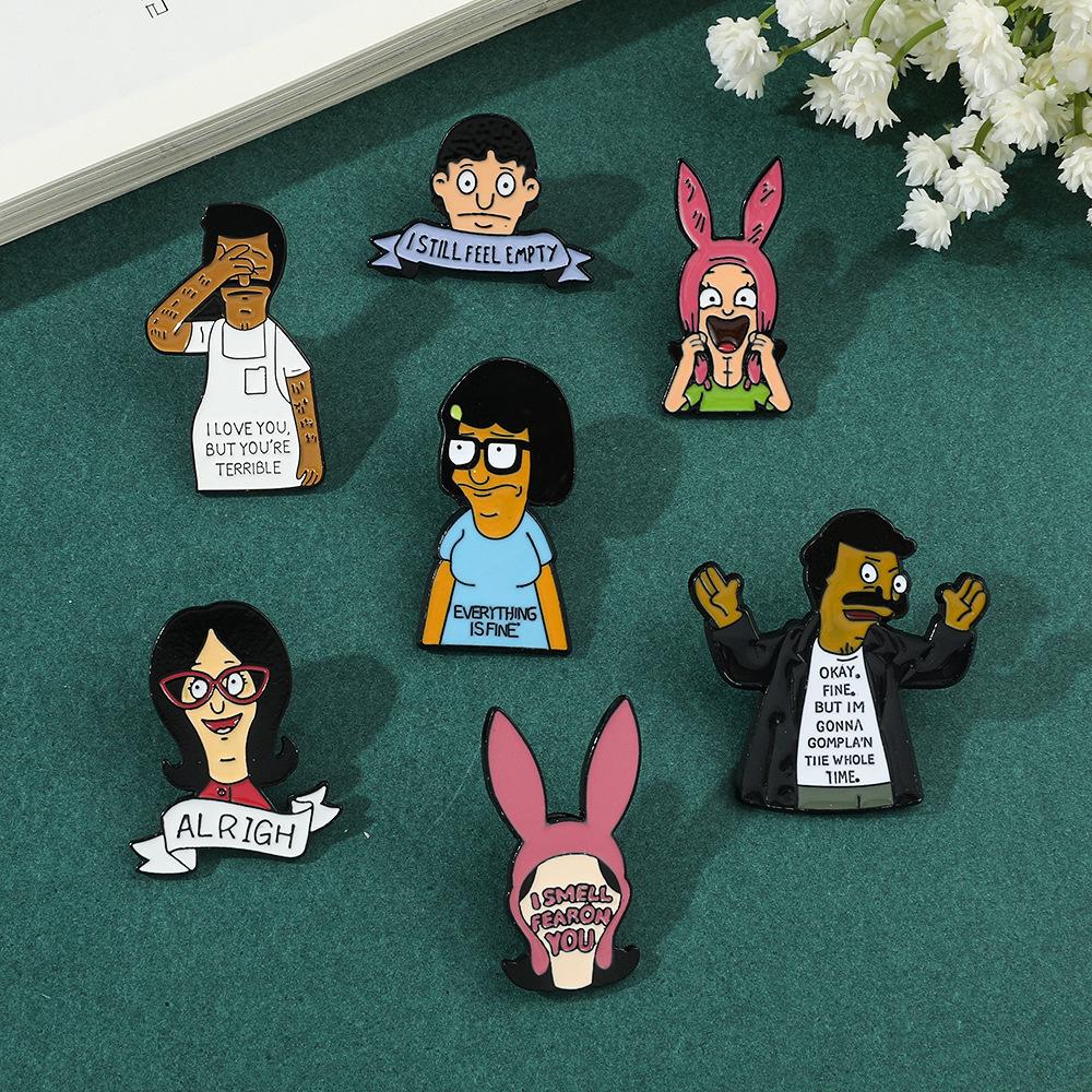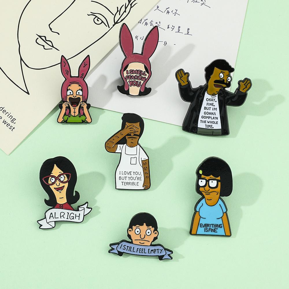 Engraçado personagem de desenho animado periférico distintivo de metal feliz hamburgeríceps loja bobs burgers broche de liga atacado