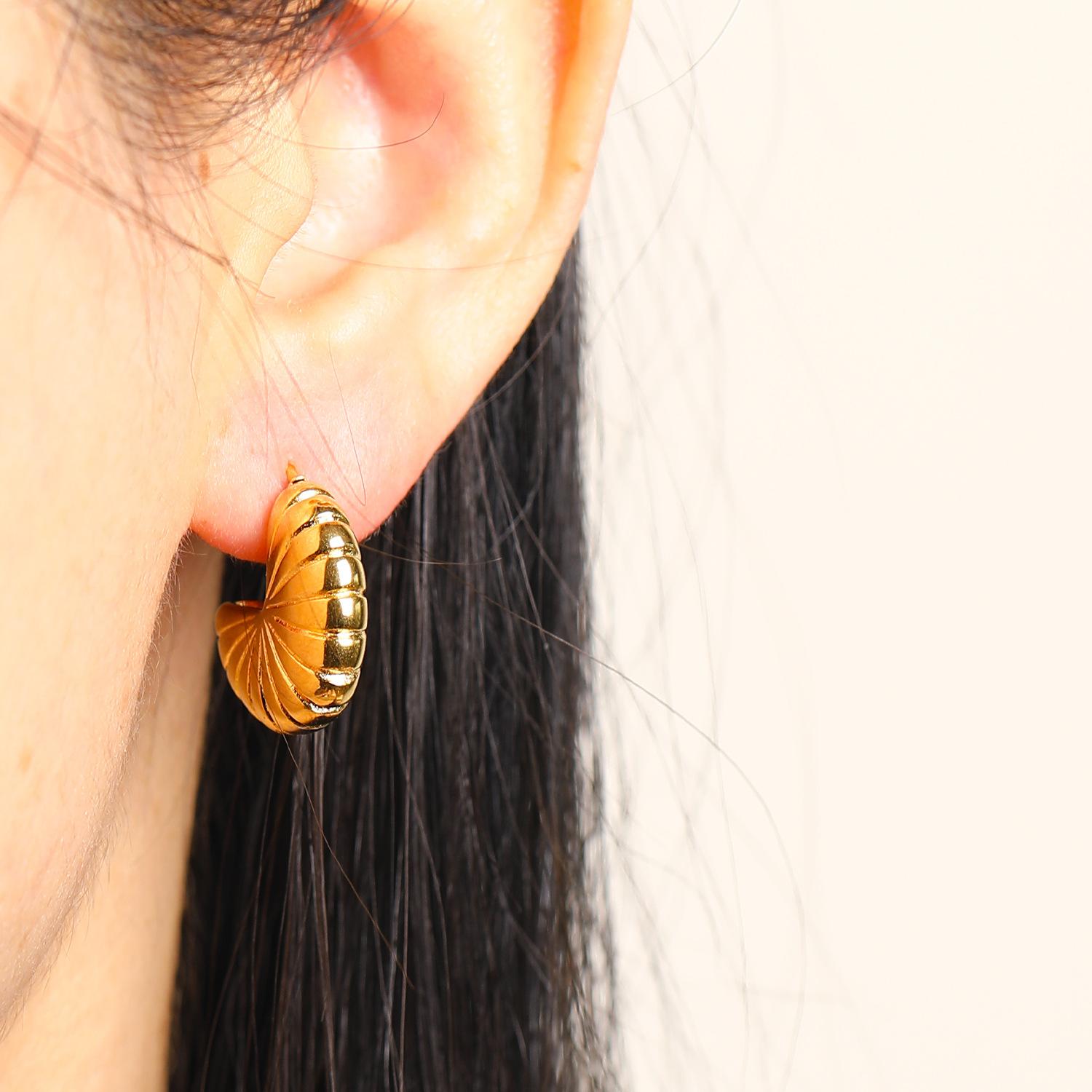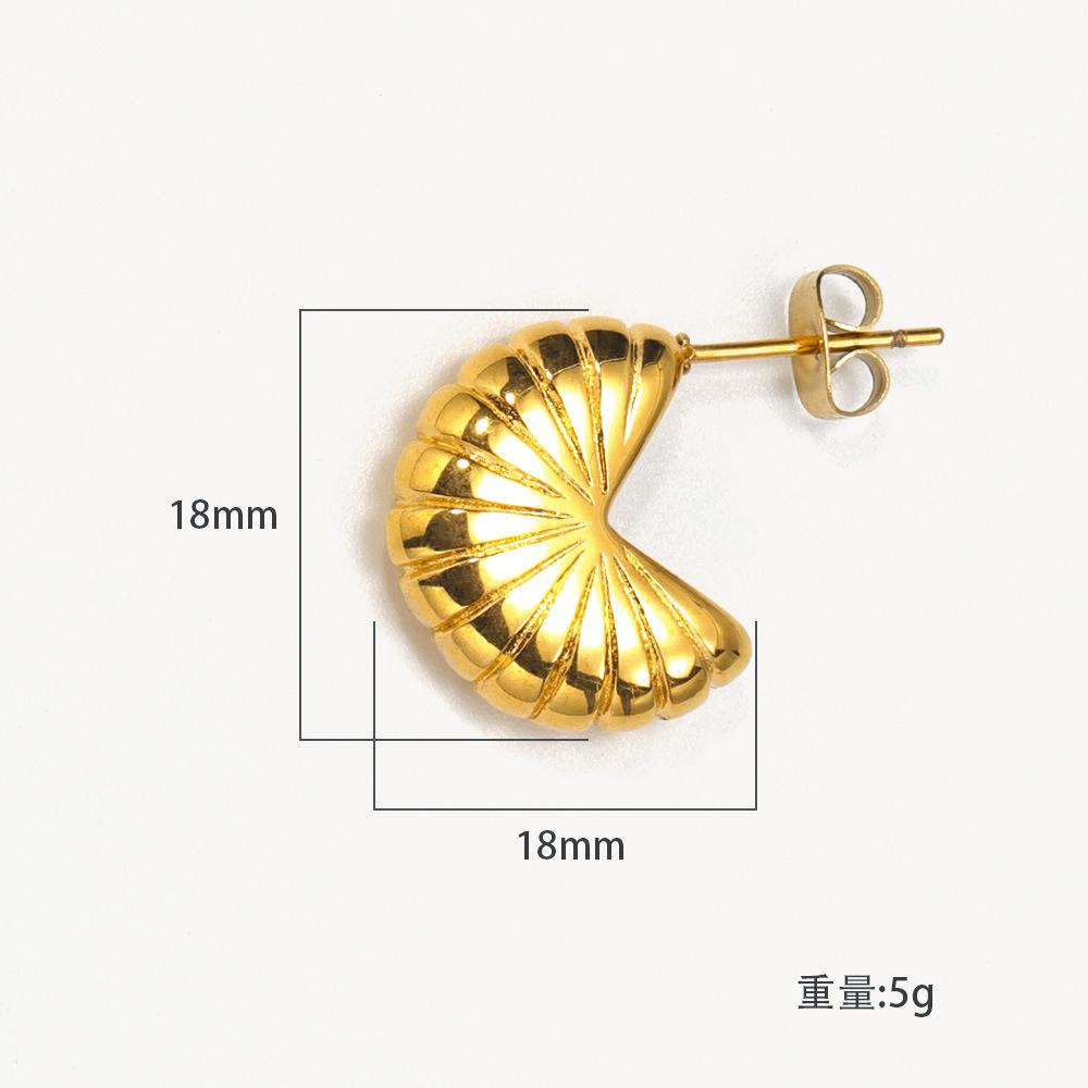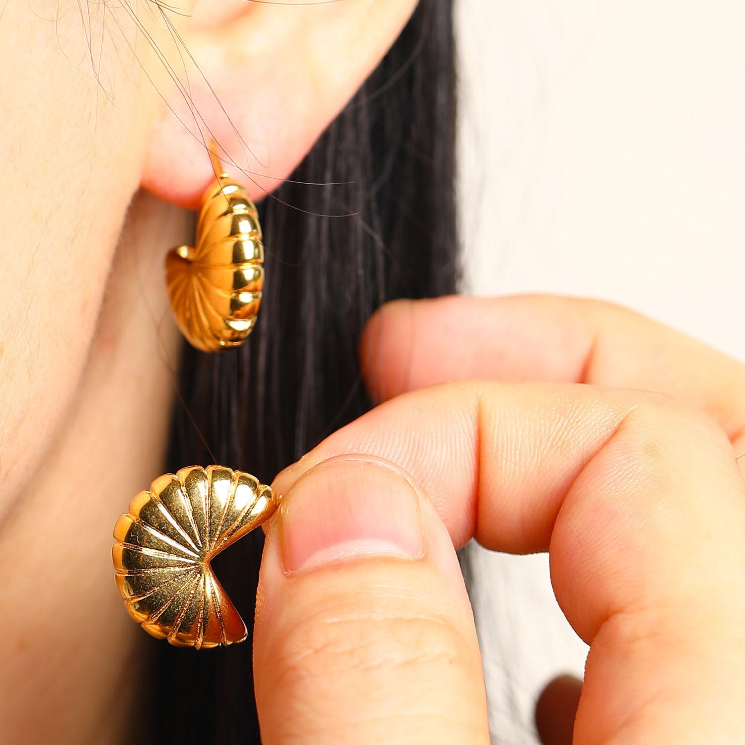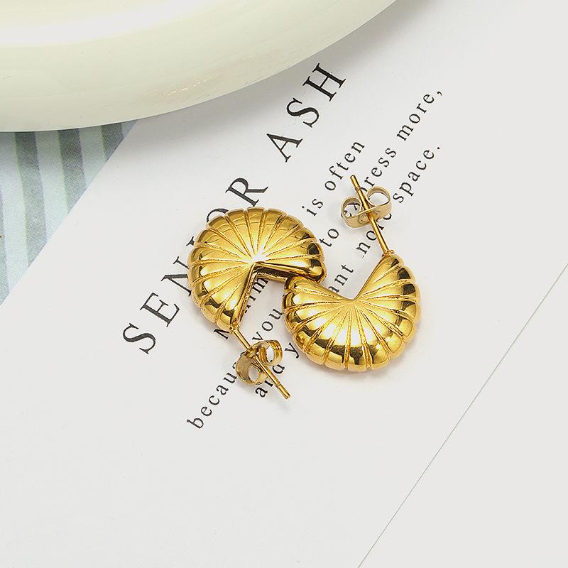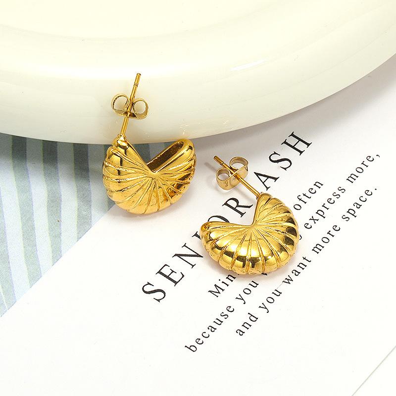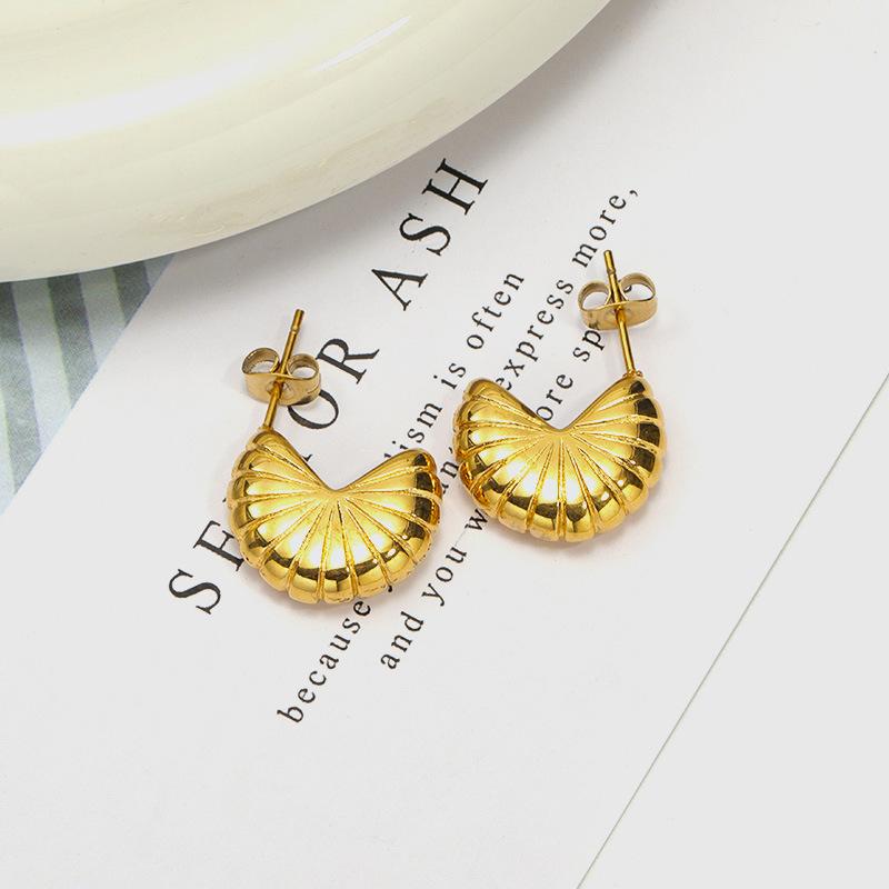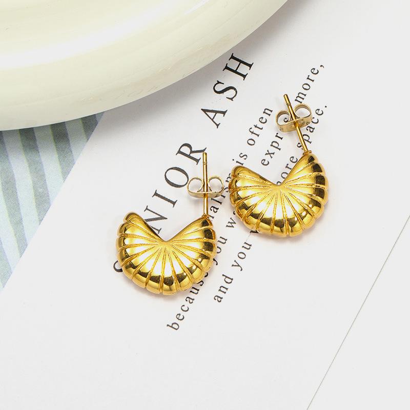 Europeu e Americano ins estilo nicho design temperamento em forma de leque brincos roscados mulheres criativas de aço titânio 18K banhado a ouro orelha jóias