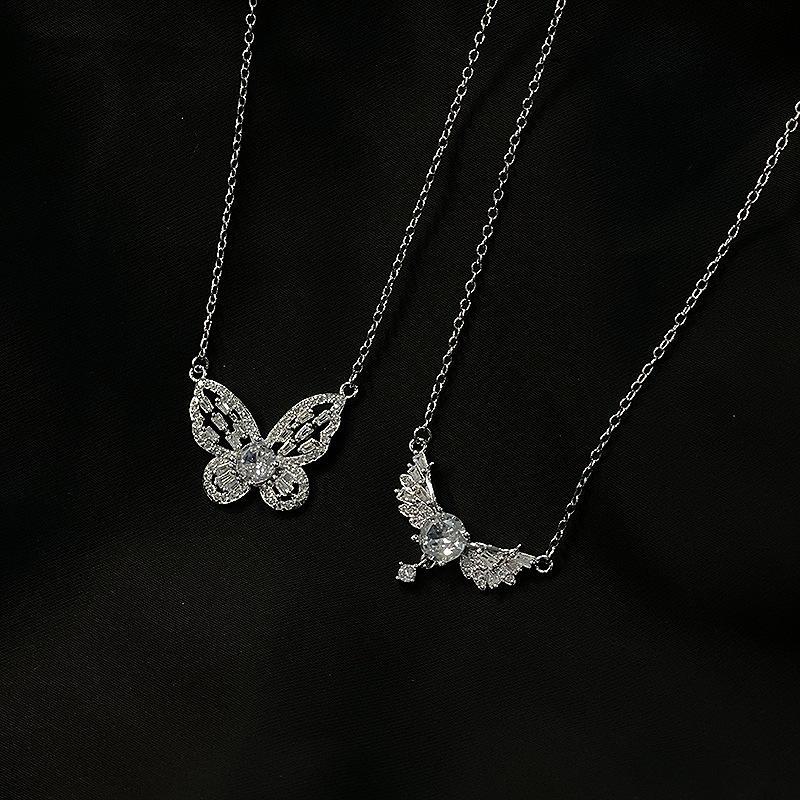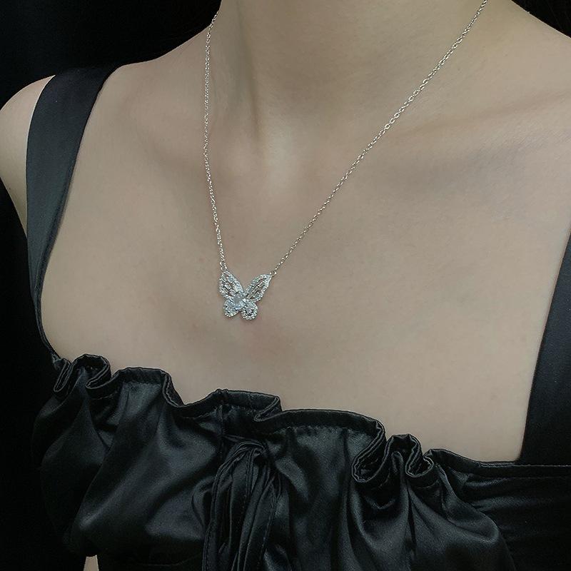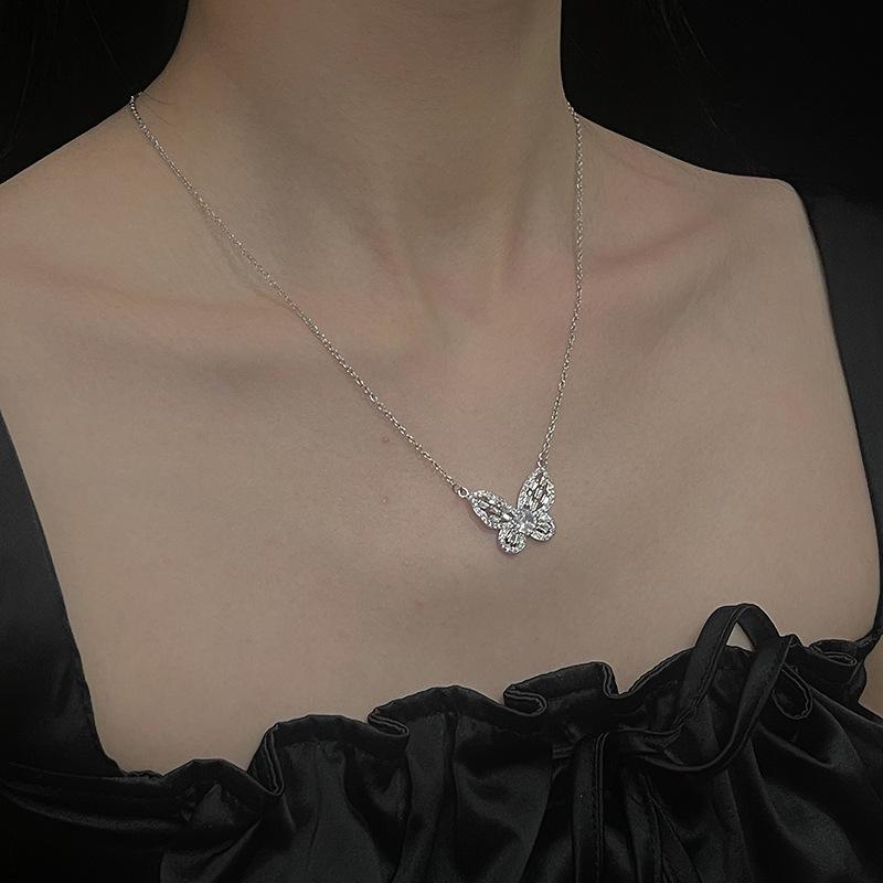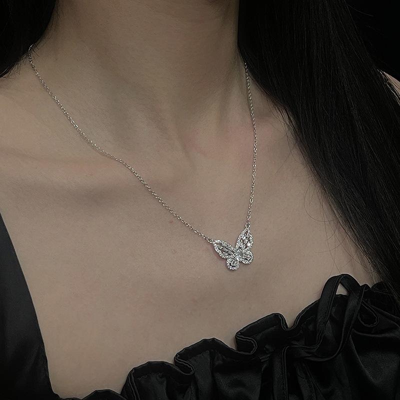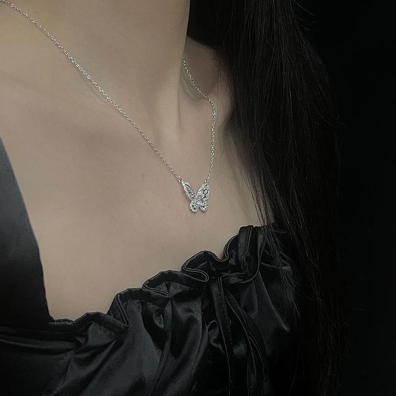 Colar de borboleta de fada de alta qualidade Clavícula Cadeia feminina Terno de diamante completo Elegante Design de nicho de luxo Acessórios de celebridades da Internet