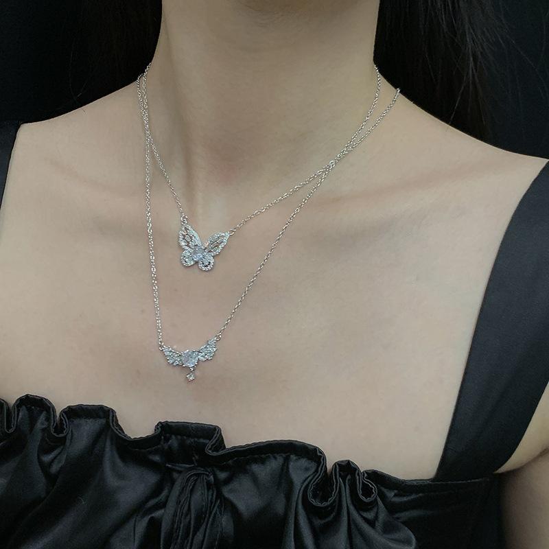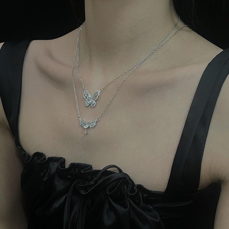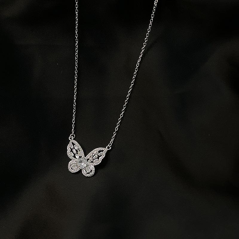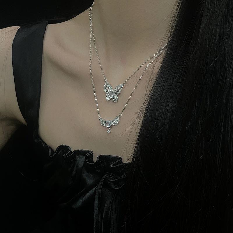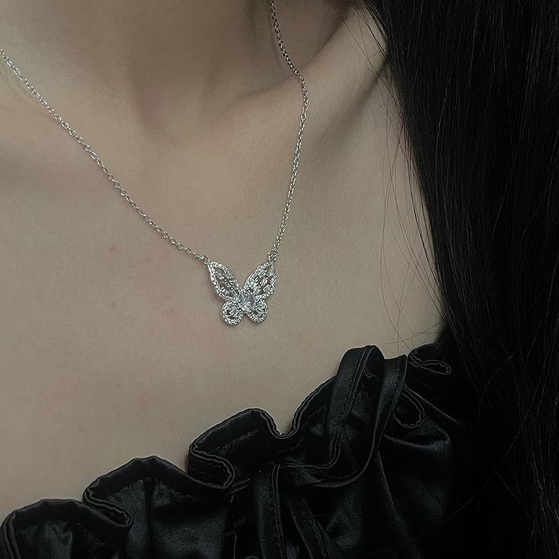 Colar de borboleta de fada de alta qualidade Clavícula Cadeia feminina Terno de diamante completo Elegante Design de nicho de luxo Acessórios de celebridades da Internet