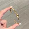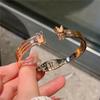 Pulseira simples nova de aço inoxidável com nó duplo para mulheres, versão coreana, ins, joia em ouro rosa em forma de C, pulseira aberta para estudantes