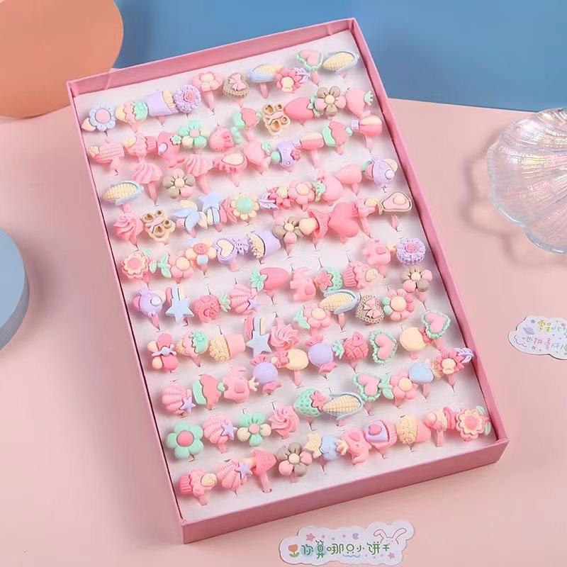 Coreano Dos Desenhos Animados Resina Doce Cor Anel Bonito Rosa Menina Jóias Anel Jardim de Infância Presente Das Crianças