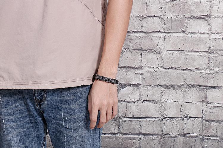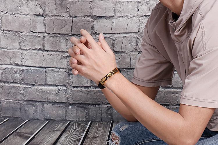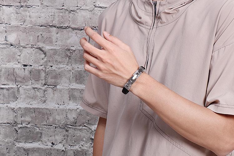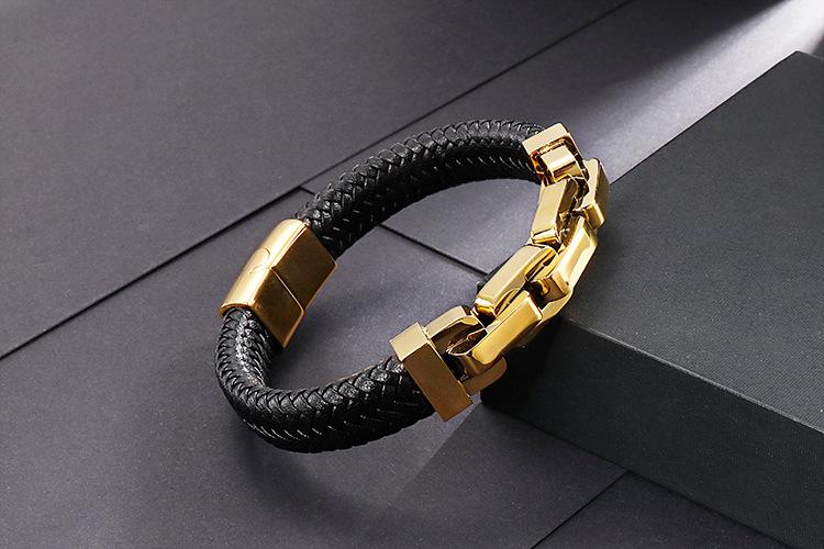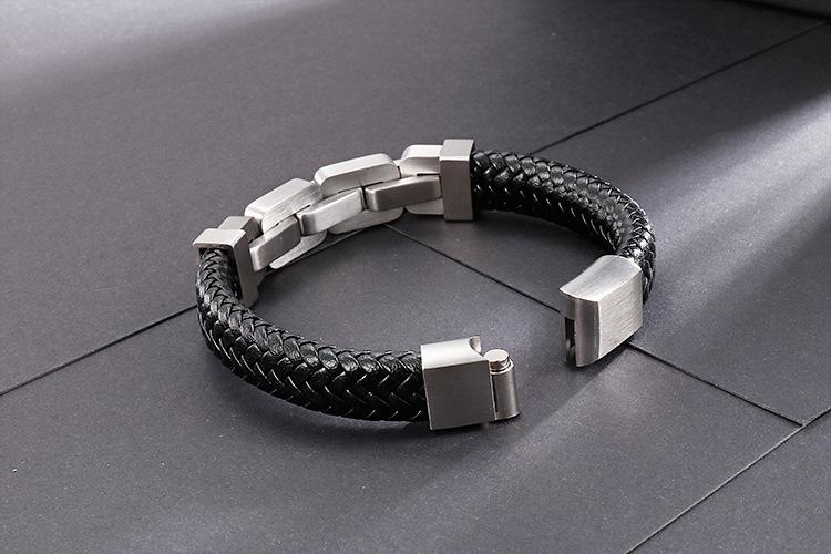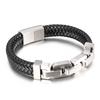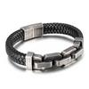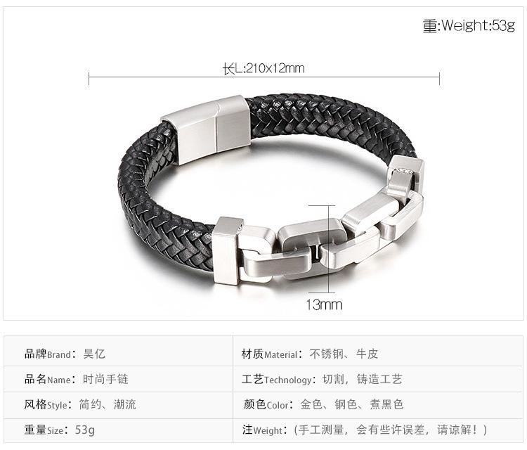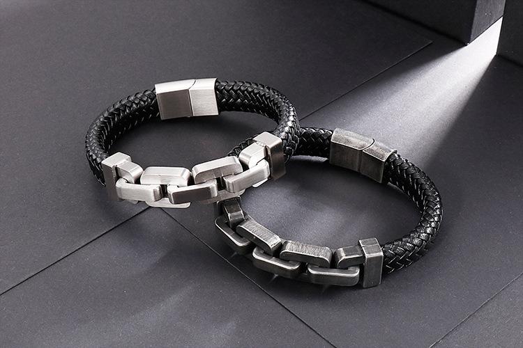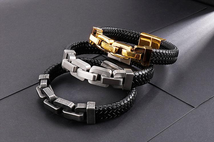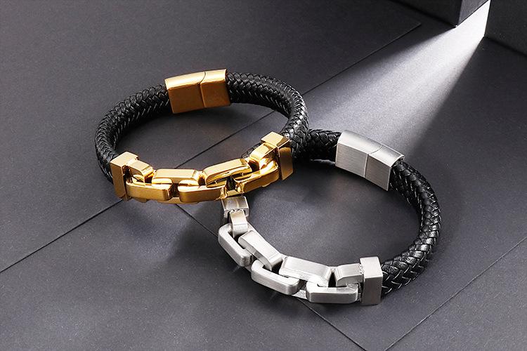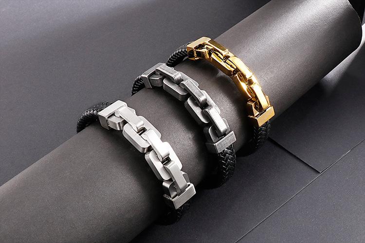 Pulseira masculina europeia e americana de aço de titânio tecido de corrente quadrada larga costura pulseira de couro jóias pulseira de aço inoxidável atacado
