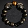 Pulseira Couro Hugh Contas Redondas Duplas de Obsidiana Dourada Natural Brave Pulseira de Olho de Tigre Amarelo com Contas de Barril de Escritura de Obsidiana para Homens e Mulheres