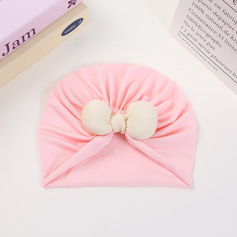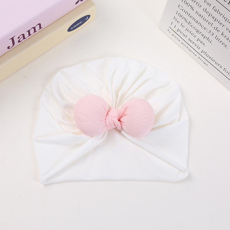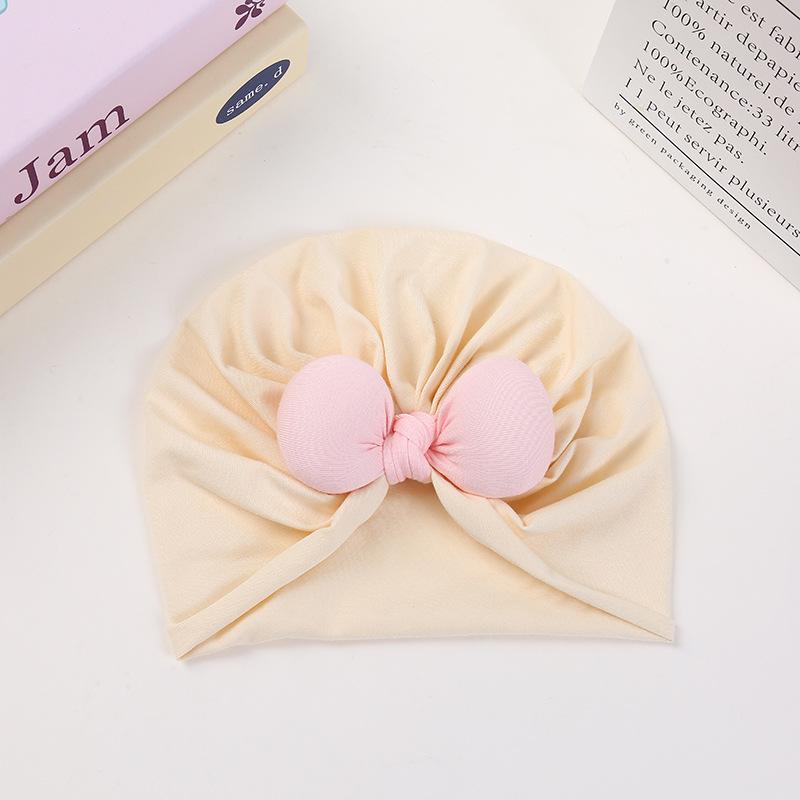 Pulôver de cor creme estilo coreano, boné fetal, laço, chapéu indiano para bebê, 100 dias, chapéu côncavo para bebê