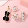 Estilo coreano Chanel Estilo Broche Piano Violino Pérola Notas de Flor Preto e Branco Quatro Peças Combinação Camisa Terno Corpete