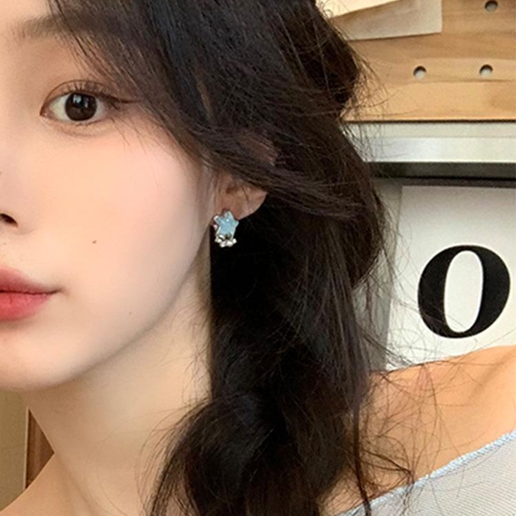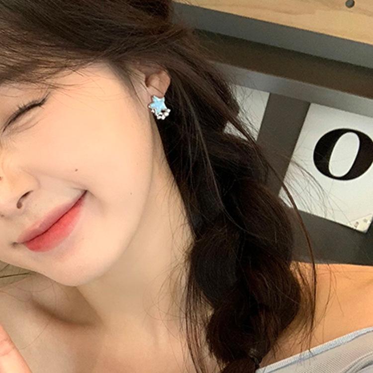 Brincos de pérola Blue Star Moon para mulheres design sense nicho personalidade retrô simples brincos de temperamento para todos os jogos