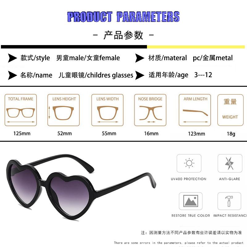 Óculos de sol de bebê com formato de coração de pêssego, novos óculos de sol infantis personalizados para tiro na rua, rosto redondo, óculos fofos para meninas