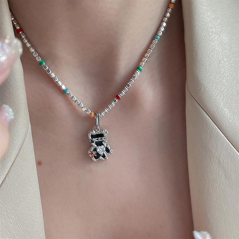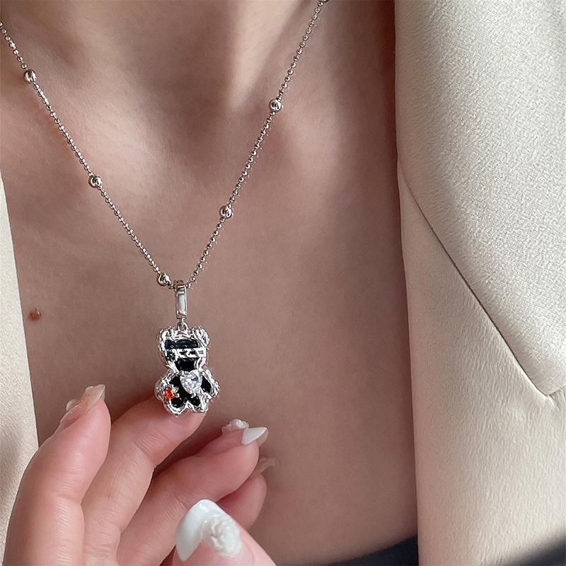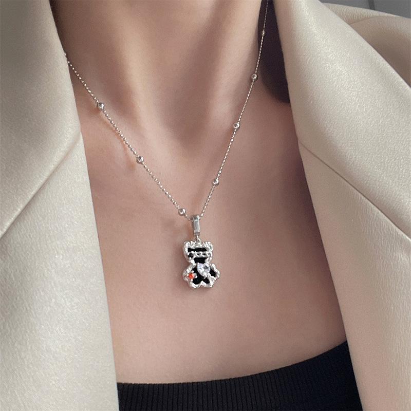 Compre Nicho Design Sense Branco Zircônio Amor Prata Borda Pingente Urso Preto Mulheres Doce Cool Estilo Moda Personalidade All-match Estilo no atacado no Joom.pro