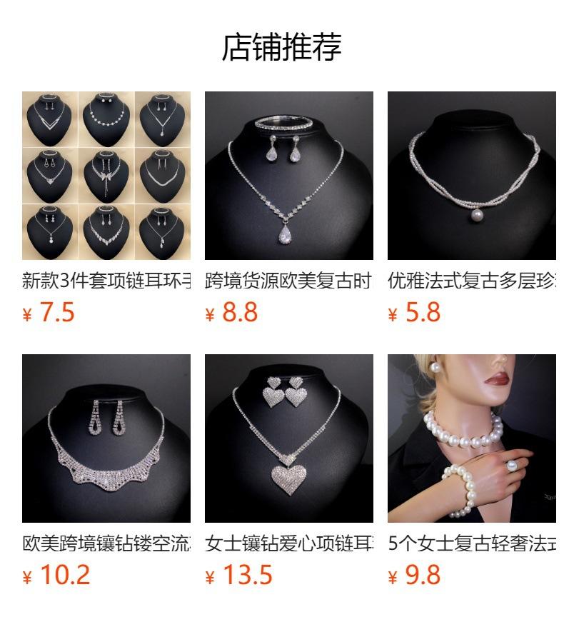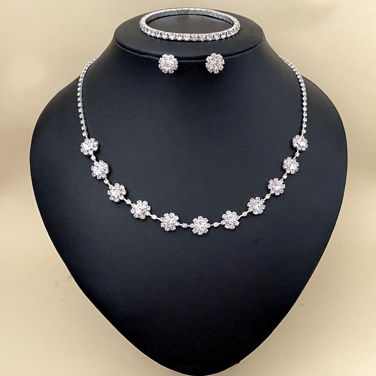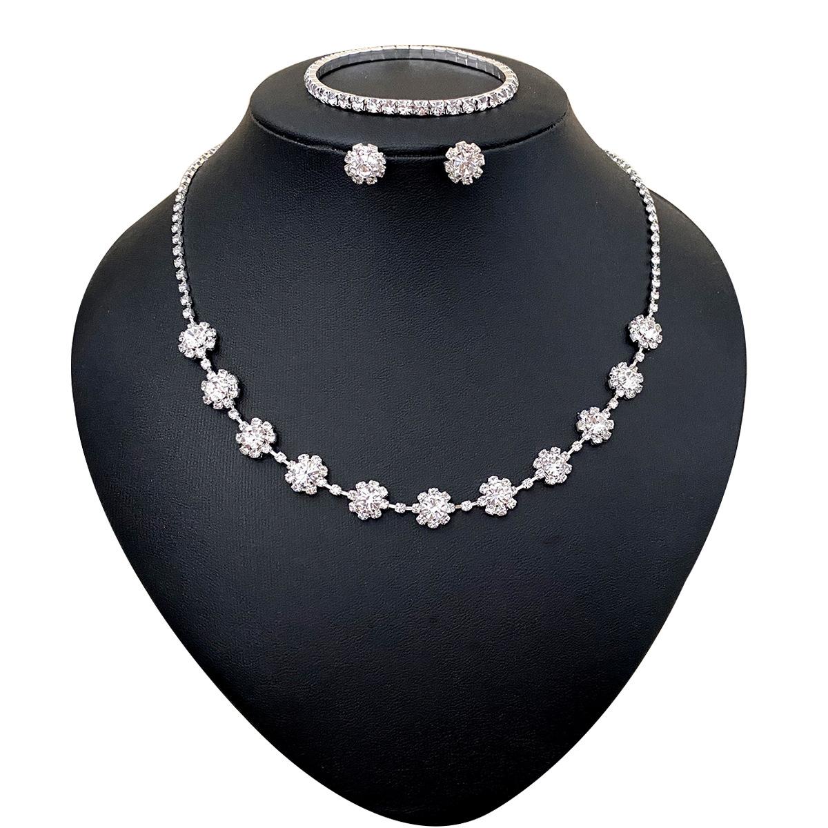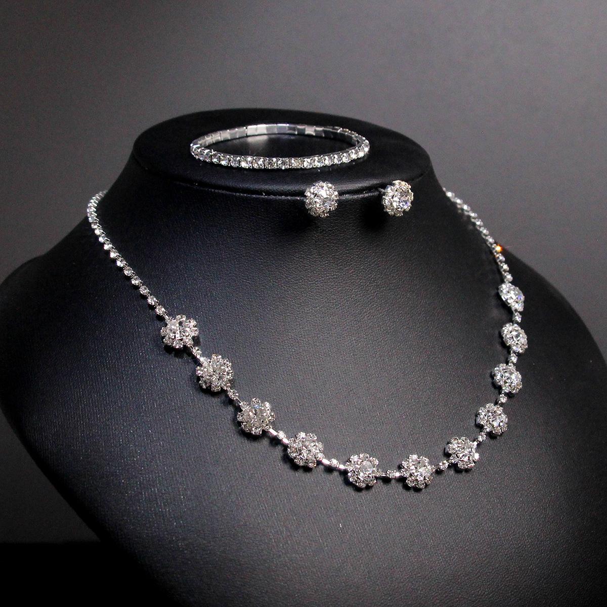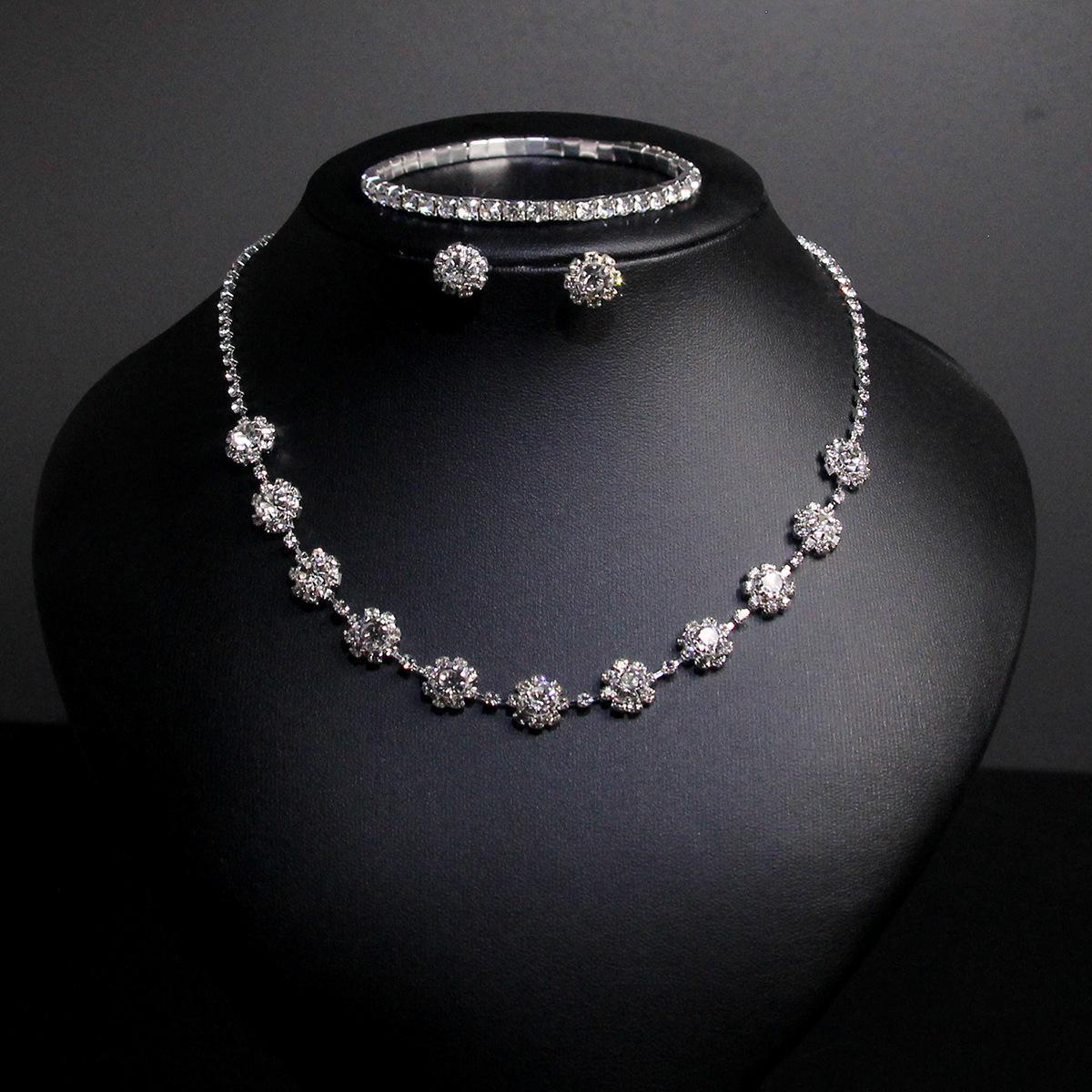Colar Brincos Pulseira Jóias terno Estilo Europeu e Americano Diamante Clavícula Noiva Diamante Banquete Terno de Três Peças Acessórios